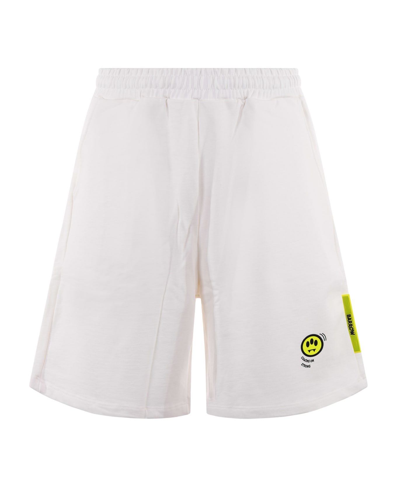 Barrow Cotton Shorts White. Elastic waist with internal drawstring. American pockets. Front logo. Lateral fluorescent label. Logo on the back. 100% cotton