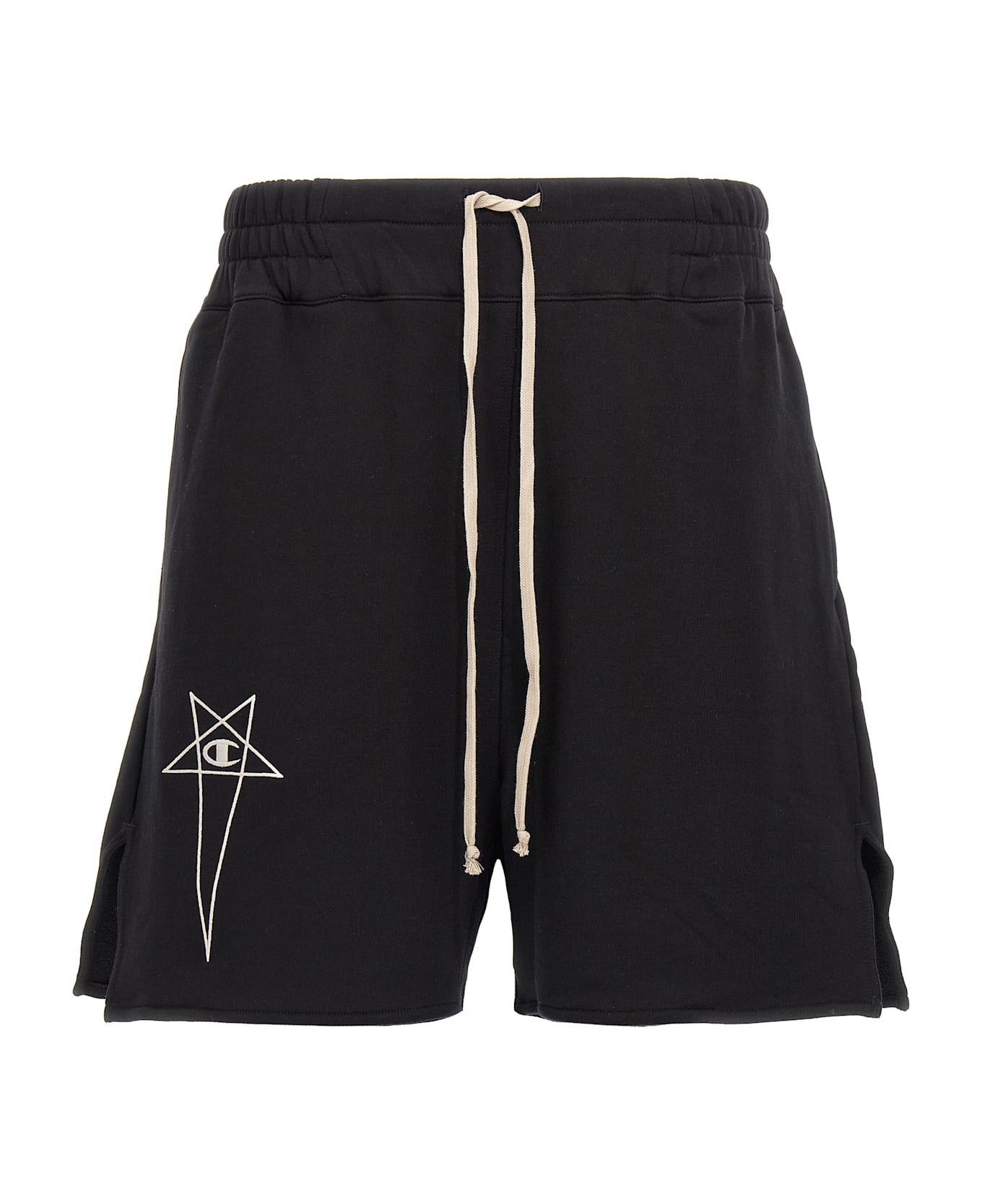 Champion x Rick Owens Bermuda shorts in brushed cotton with contrasting logo embroidery on the front, back logo patch, adjustable drawstring elastic at the waist, pockets, side slits at the hem. SUSTAINABLE: This product is made of organic cotton.