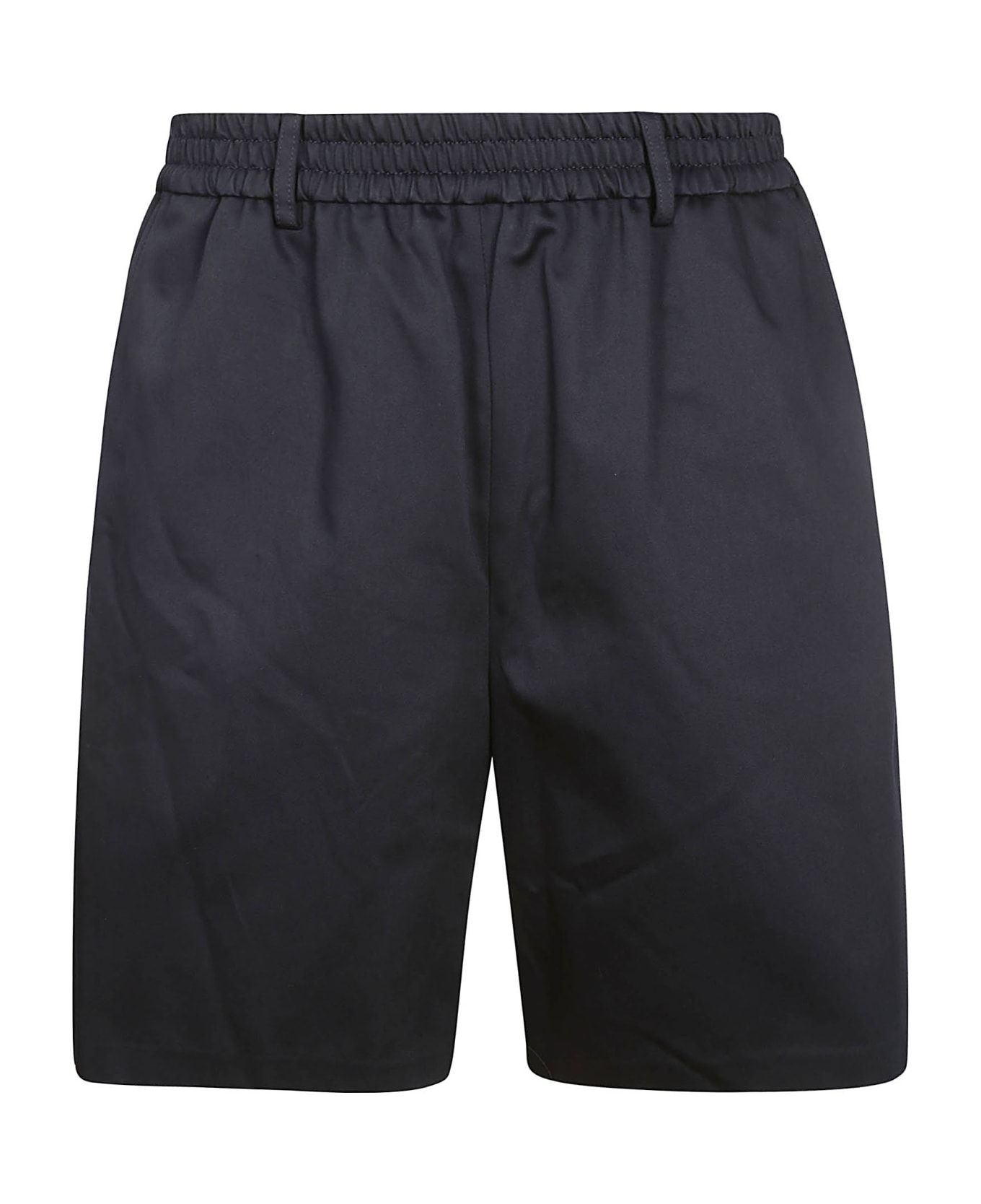 AMI Bermuda in blue cotton, elastic waist, logo detail, back pockets. Composition: 100% Cotton
