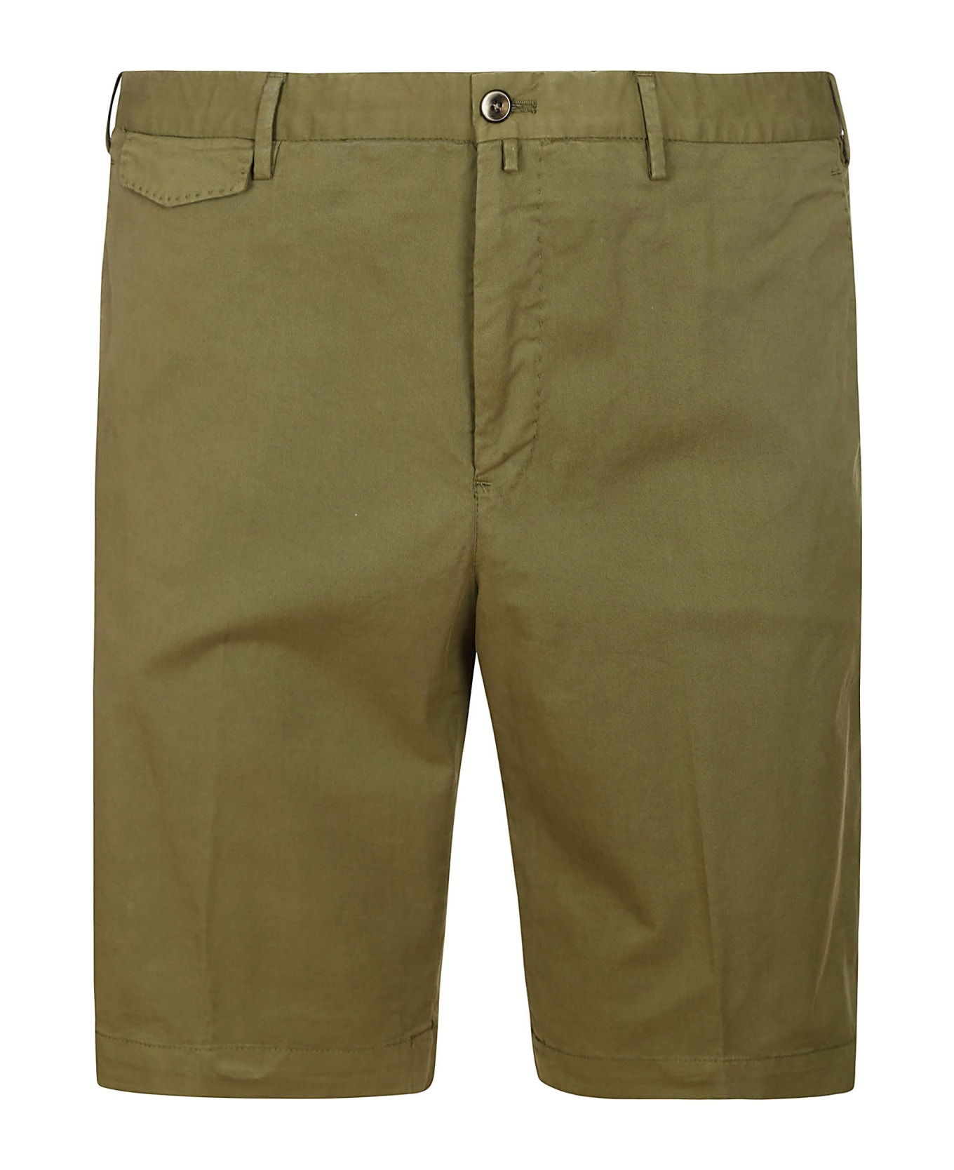 PT Torino Bermuda in green cotton, zip and button closure, side slit pockets, belt loops, back pockets with buttons. Composition: 98% Co , 2% Ea