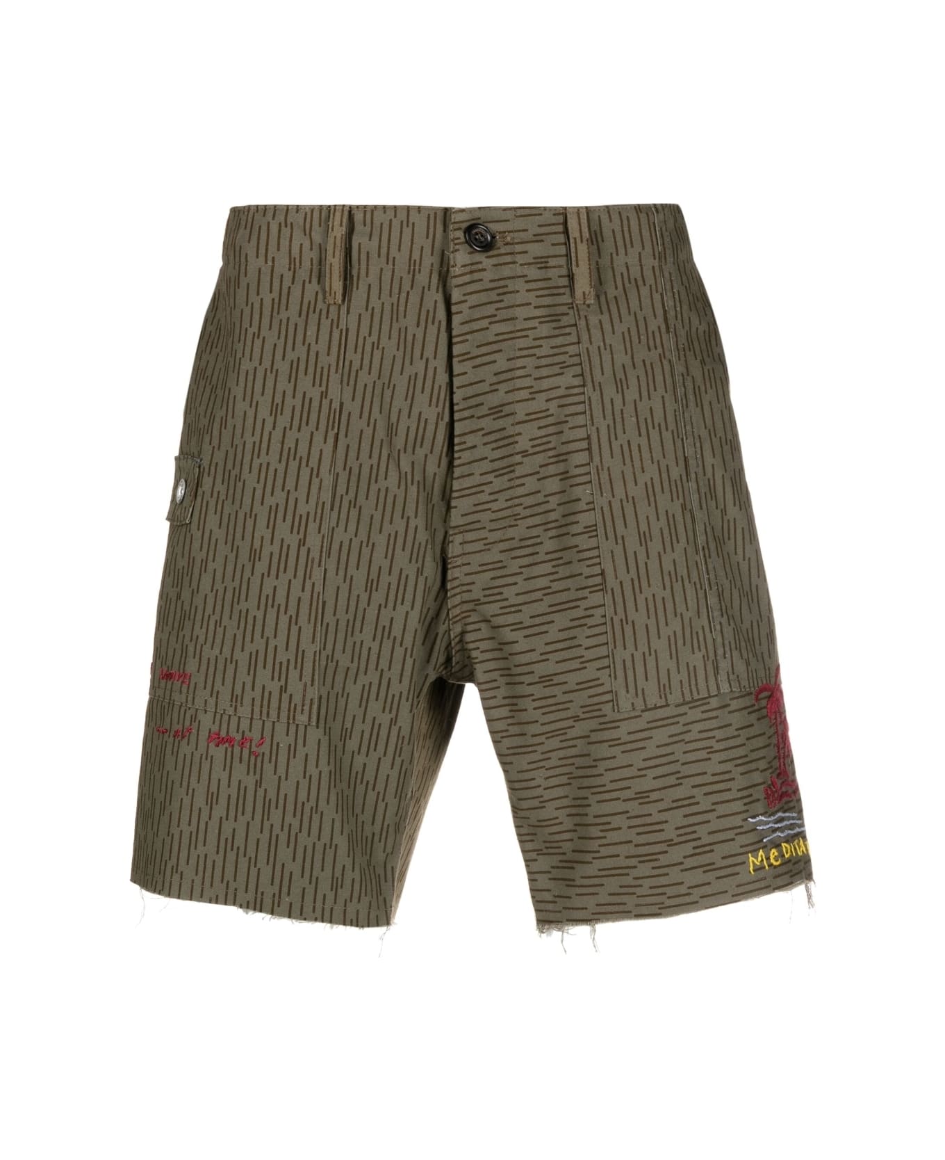 stripe-pattern cotton shorts from PRESIDENT S featuring sage green, cotton, multi-way stripe pattern, embroidered logo to the front, belt loops, concealed fly and button fastening, two side patch pockets, two rear button-fastening pockets and raw-cut hem.