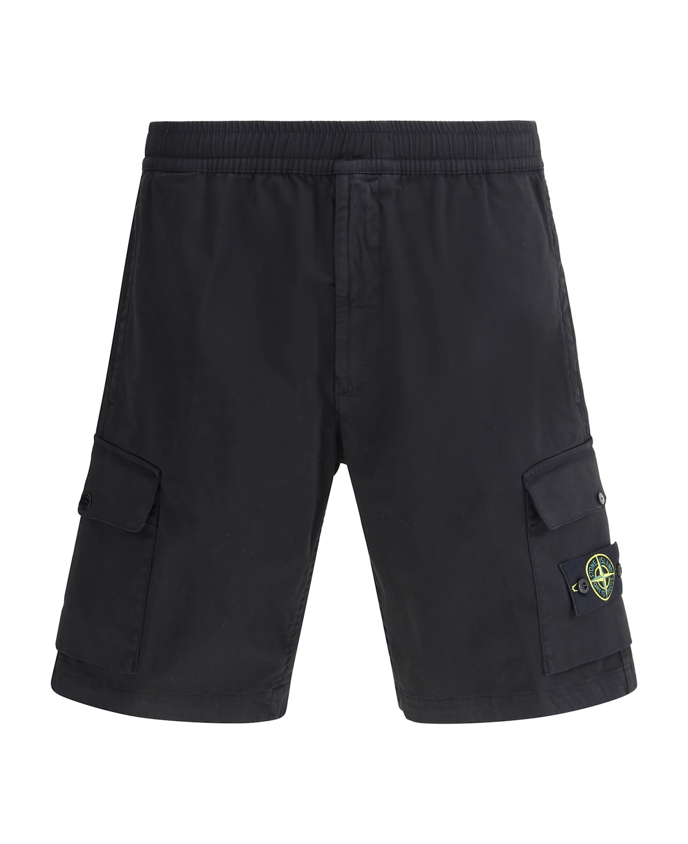 Stone island's cotton cargo shorts combine comfort and functionality in an essential utility-inspired design. made from lightweight cotton, they feature an elasticized waistband for a comfortable and adaptable fit. completing the style are two slash pockets on the sides, a welt pocket on the back and large cargo pockets attached to the side panels, ideal for practical everyday use. perfect for casual looks with a technical character.