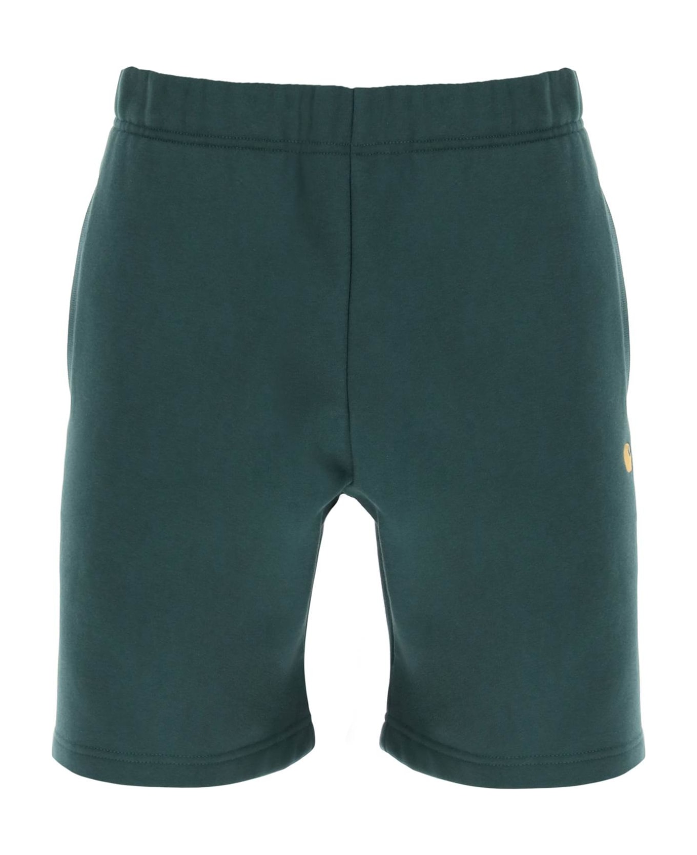 Jogger shorts by Carhartt-WIP made of brushed-back cotton-blend jersey featuring contrasting embroidered logo detail at front. Adjustable drawstring waistband, front welt pockets, patch pocket at back. Finished with ribbed insert on the crotch. The model is 187 cm tall and wears a size M. Composition: 58%CO, 42%PL