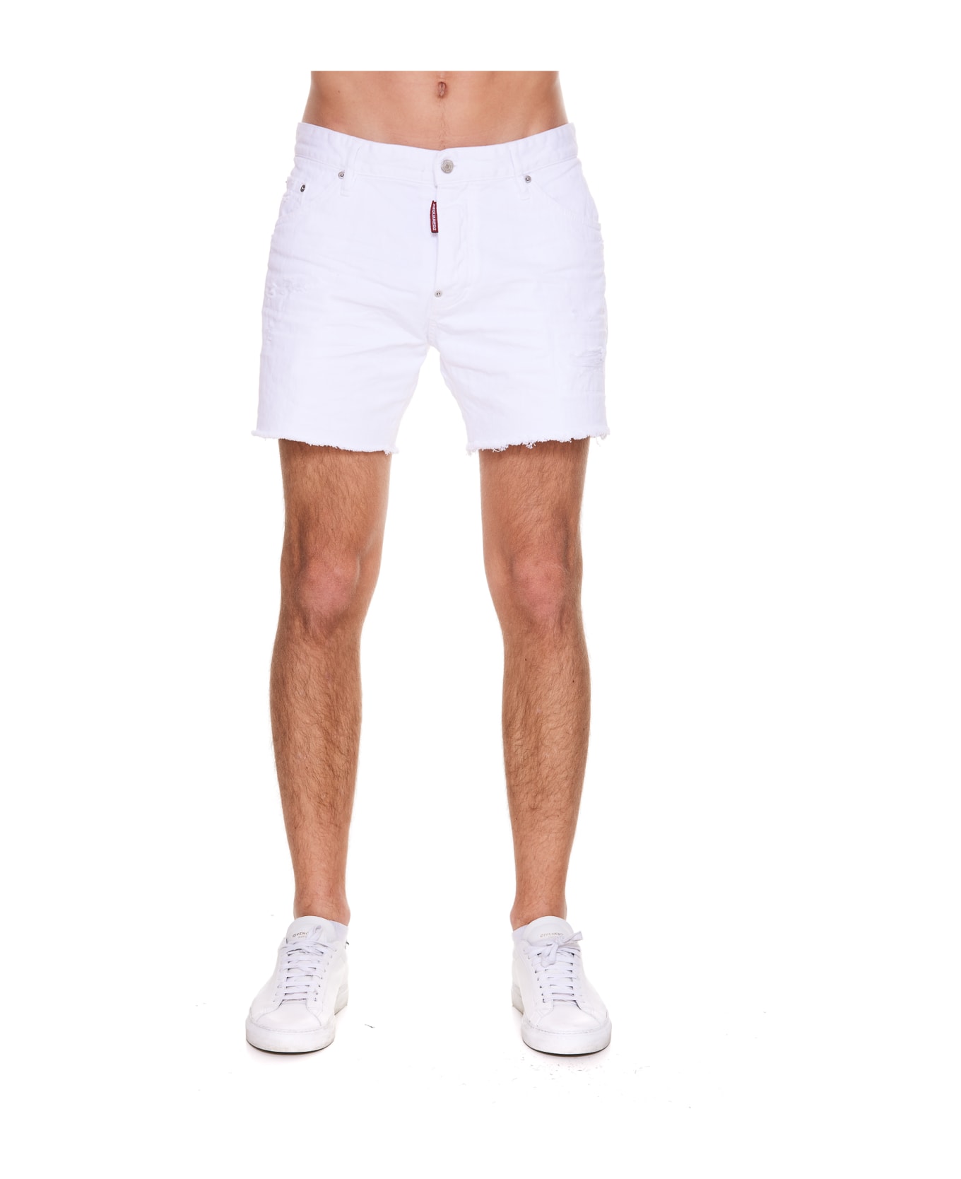 - man shorts, zip and button closure, frontal logo, pockets, patch on the back, white - Composition: 100% Cotton