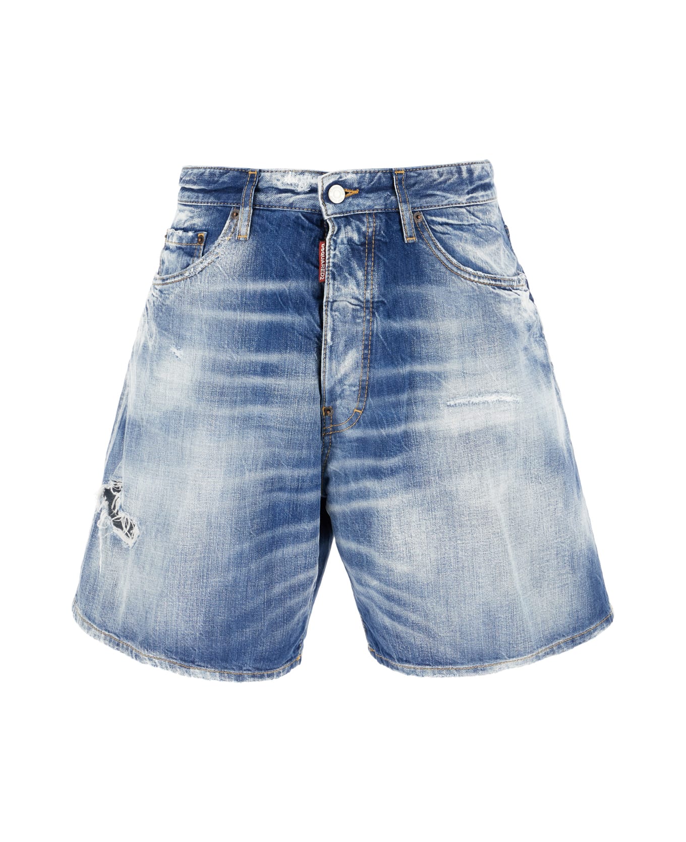 Bermuda shorts realized in distressed effect pure cotton denim enriched by contrasting logoed label at the back. -Belt loops at the waist -Concealed buttons with a visible button closure -Five classic pockets