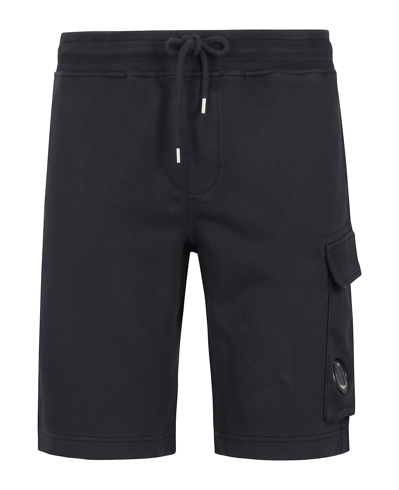 Cargo Fleece Shorts - CP Company - Blue color - Elasticized waistband with drawstring - Flush side pockets - Cargo pocket with Lens patch - Loose fit