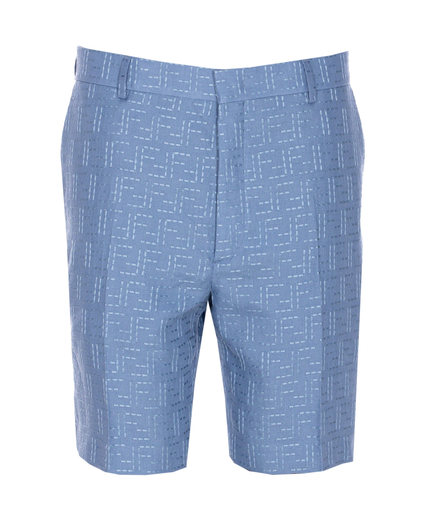 Fendi blue bermuda, FF logo, button, hook and zip closure, lateral pockets Composition: 83% Linen, 17% Cotton, 100% Cotton