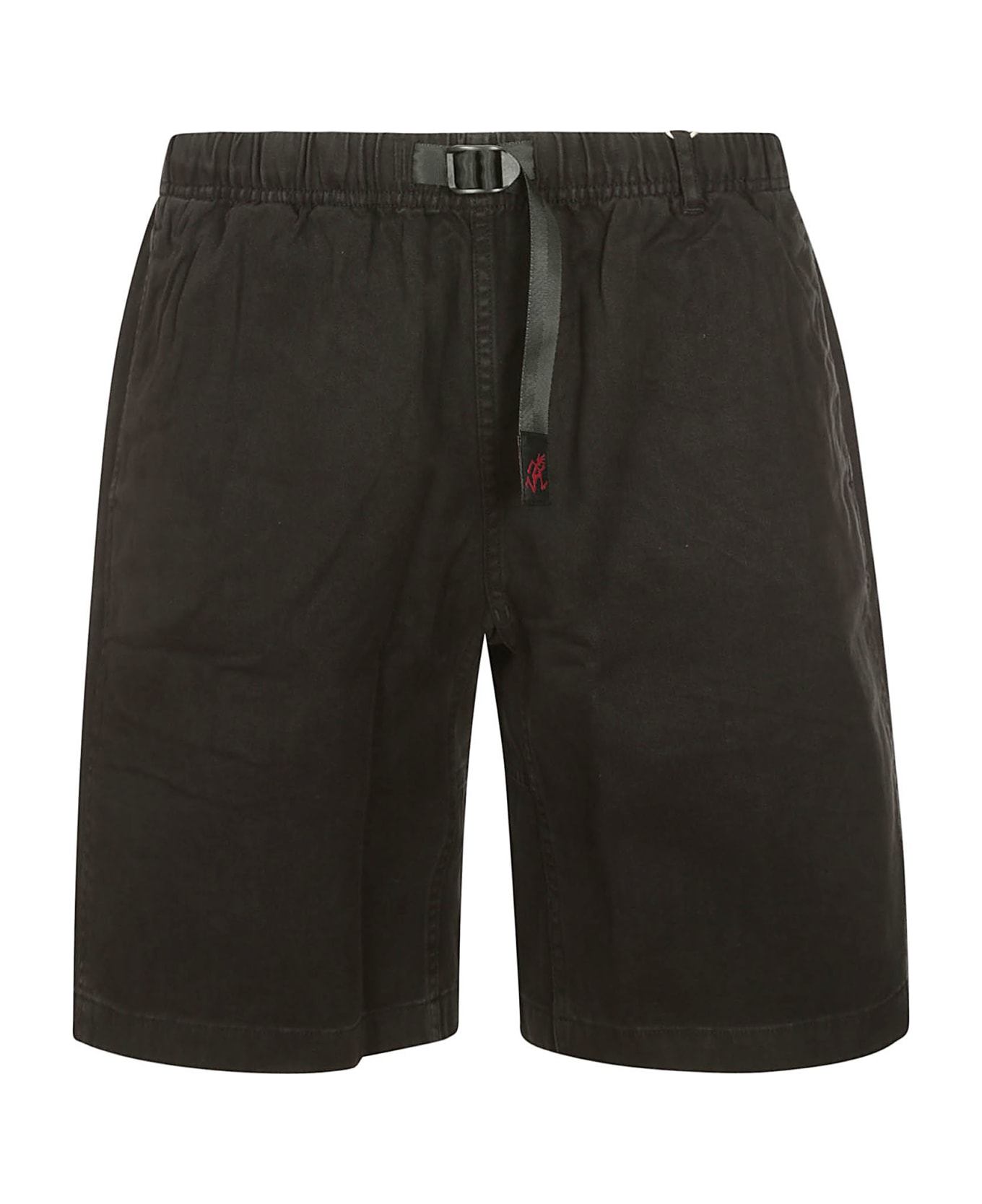 Gramicci Bermuda shorts in black cotton, adjustable drawstring closure, elastic waist, side pockets, back welt pockets, logo detail.