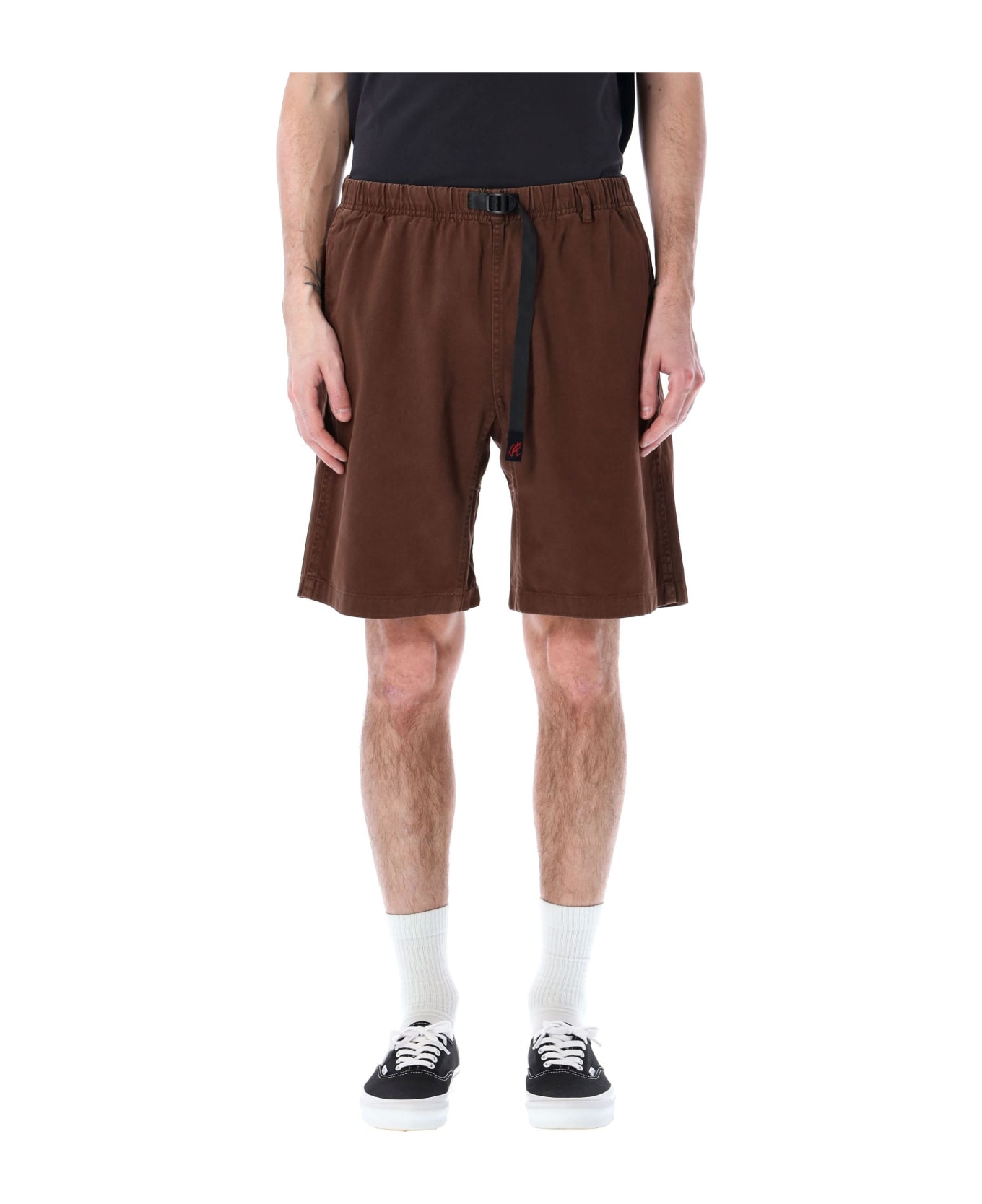 Cotton G-short By Gramicci. Featuring: Flex Fit Elastic Waistband And Integrated Nylon Cinch Belt Side Pockets Rear Welt Pockets Logo Patch At Back The Model Is 1,90 M Tall And He's Wearing Size L