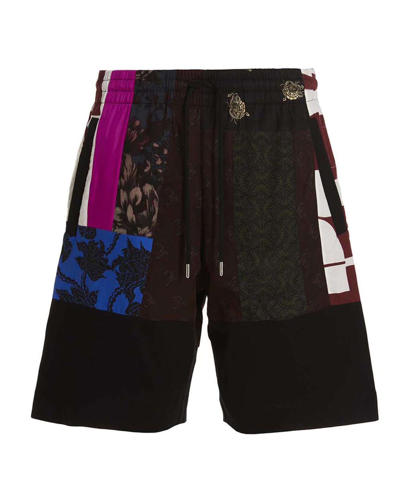 'Herick multicolor patchwork fabric bermuda shorts with an elastic and drawstring at the waist, pockets.