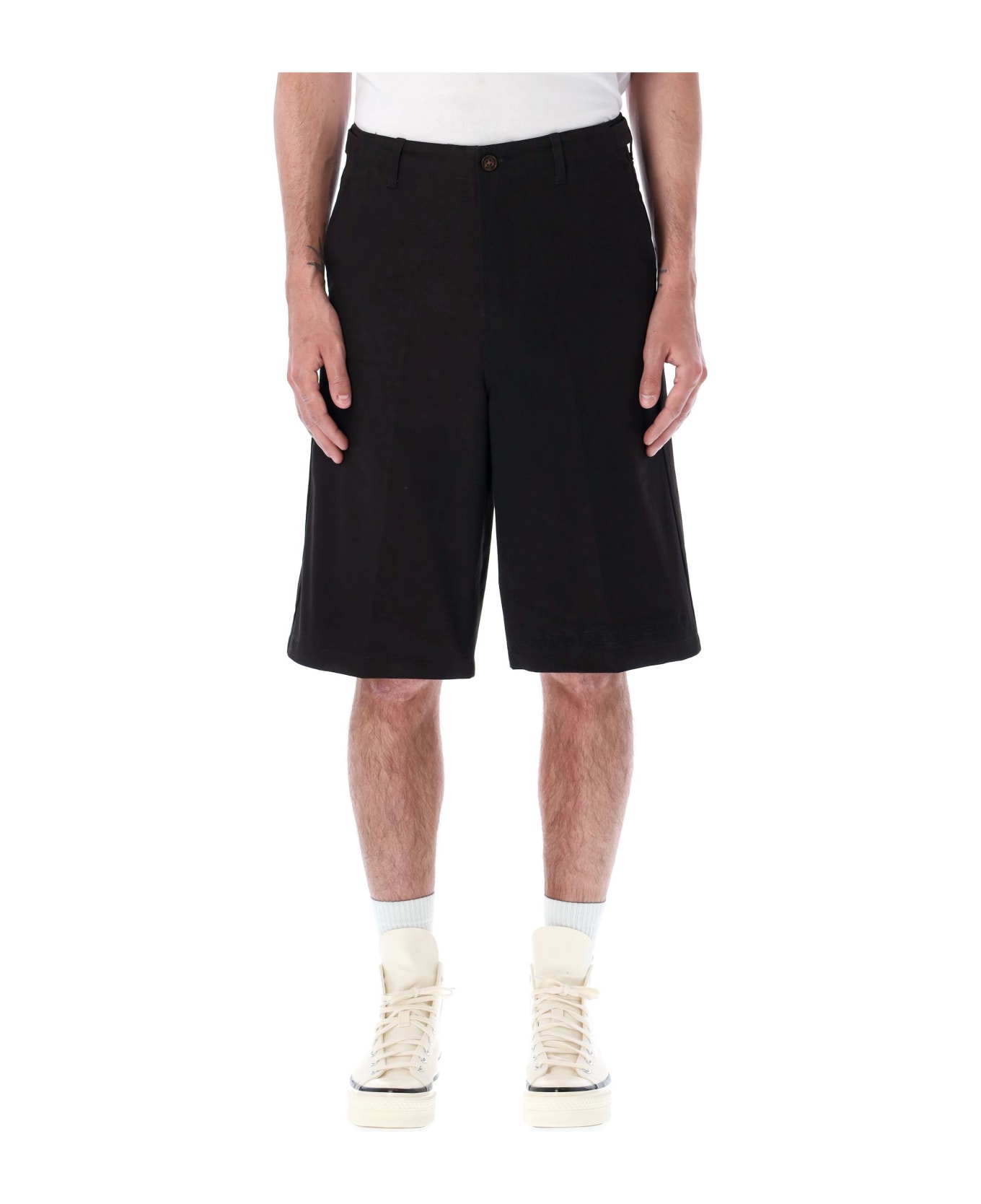 Cotton Htg® Shop Short By Honor The Gift. Featuring: Work Trouser Shorts Button And Zip Fastening Belt Loops Slit Pockets Tone-on-tone Logo Embroidery At Left Hem Knee-length Rear Welt Pockets Model Is 1,90 M Tall And He Is Wearing Size 34