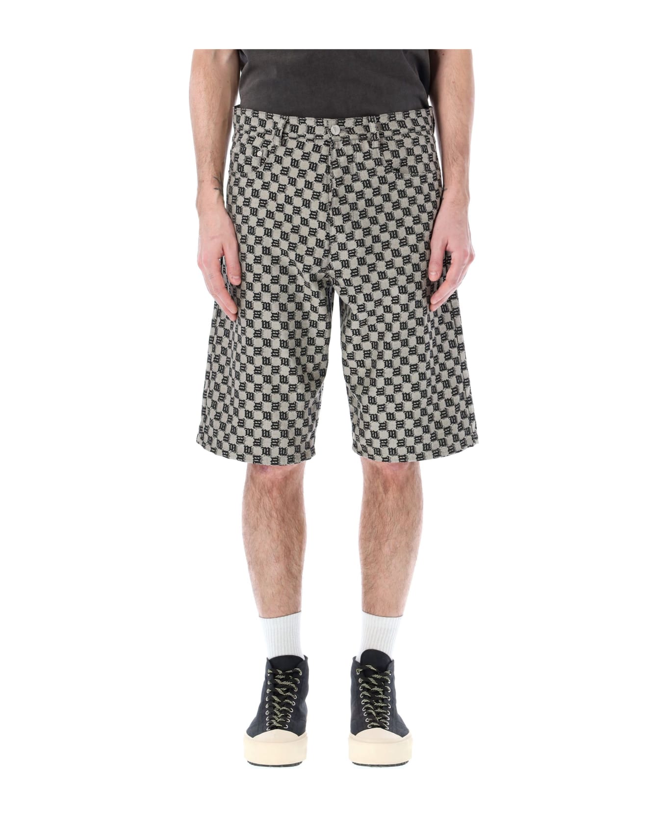 Jacquard Canvas Monogram Shorts By Misbhv. Featuring: Buttons Fastening Belt Loops Five Pockets All-over Jacquard Monogram Knee Length The Model Is 1,90 M Tall And He's Wearing Size L