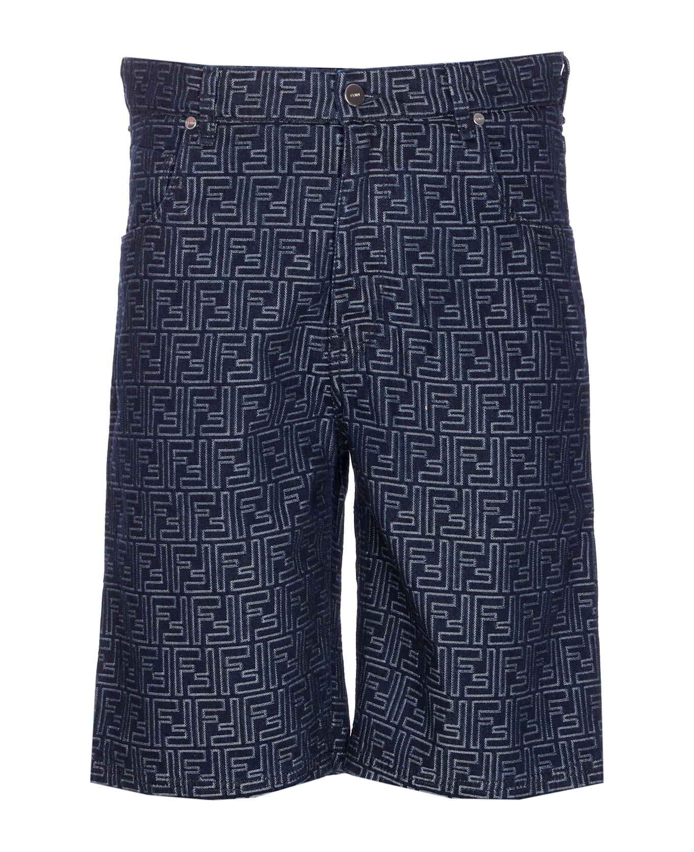 Fendi blue denim shorts with FF logo, button and zip closure, lateral pockets, all over FF logo, patch logo on the back Composition: 100% Cotton