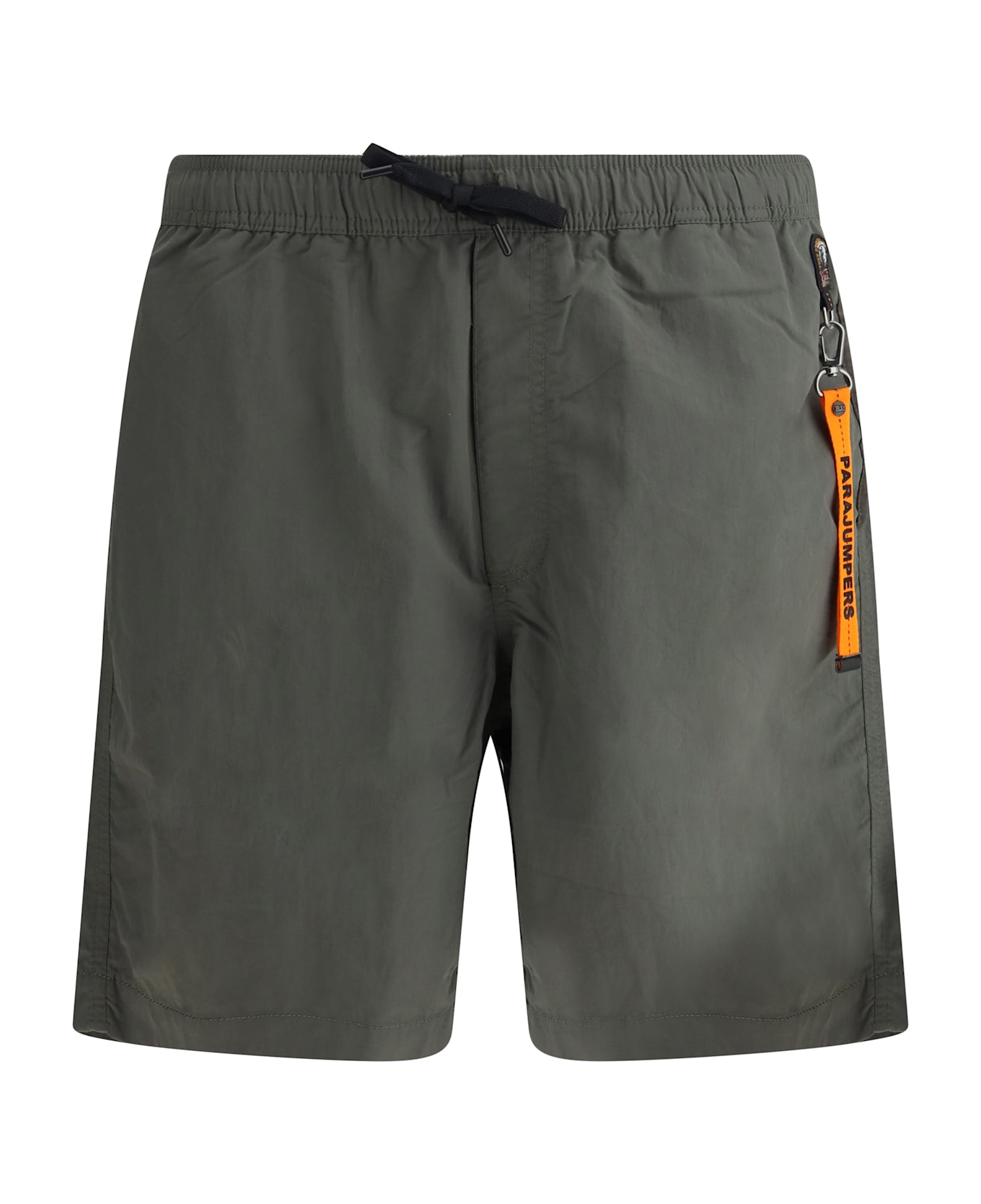 The mitch shorts by parajumpers are a minimalist yet functional design. the adjustable elastic waistband with drawstring ensures a customizable and comfortable fit. side welt pockets and a flap pocket on the back provide convenience and extra space for small items. monogram patch on the front and pull detail add a distinctive touch to the design.