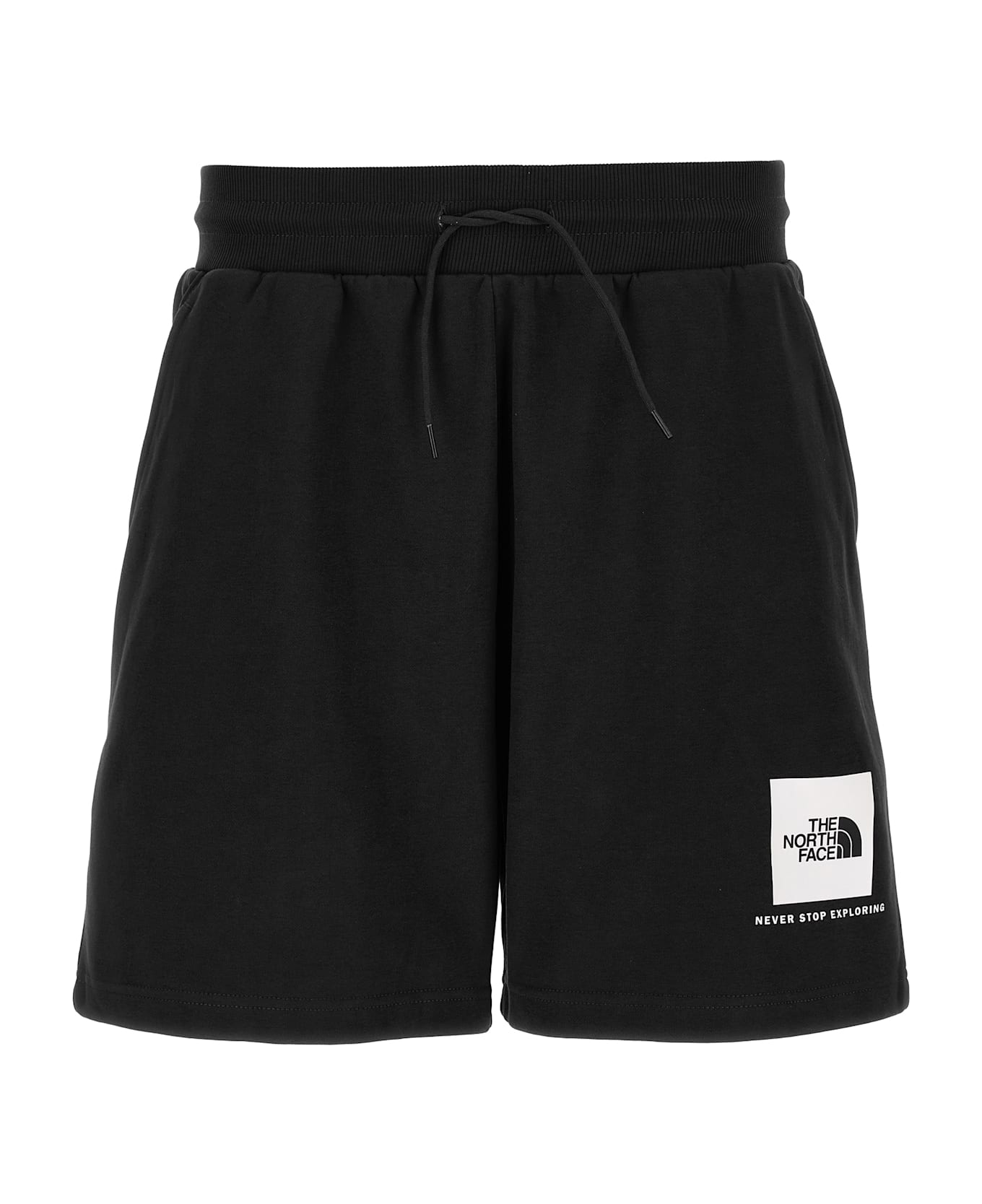 'NSE Box' bermuda shorts in fleece cotton, front print, adjustable drawstring elastic waistband, pockets.