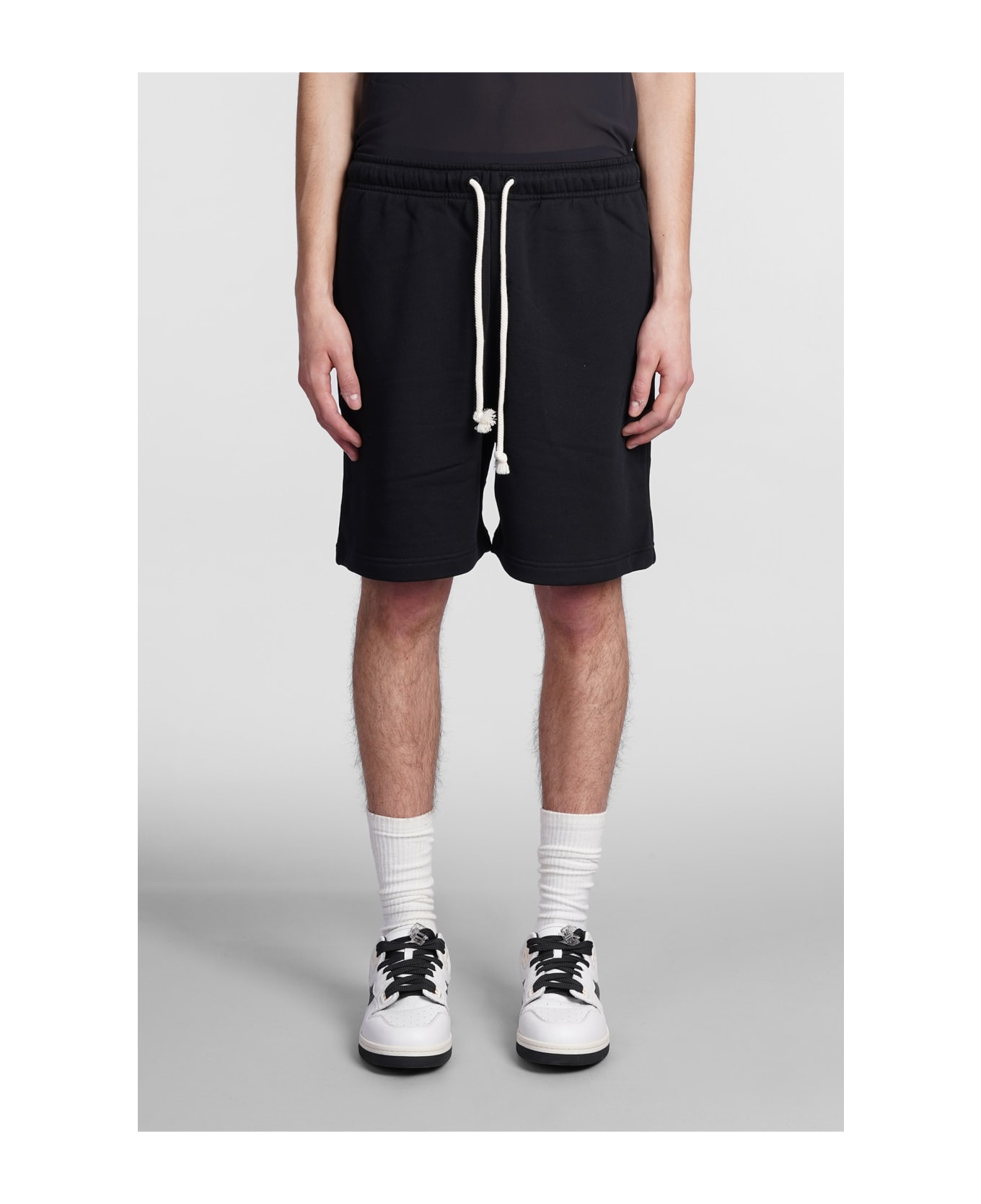 Pants in black cotton, Elastic waist, coulisse closure, side patch logo, 100% cotton, Made in Portugal, Model is 1. 83 and wears size M