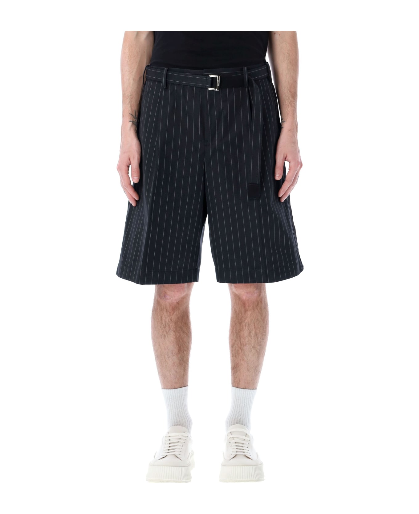 Cotton Pinstriped Bermuda Shorts By Sacai. Featuring: Concealed Hook And Zip Fastening Belt Loops Matching Belt With Engraved Logo Buckle Side Pockets Rear Welt Buttoned Pockets Relaxed Fit The Model Is 1,90 M Tall And He's Wearing Size 3