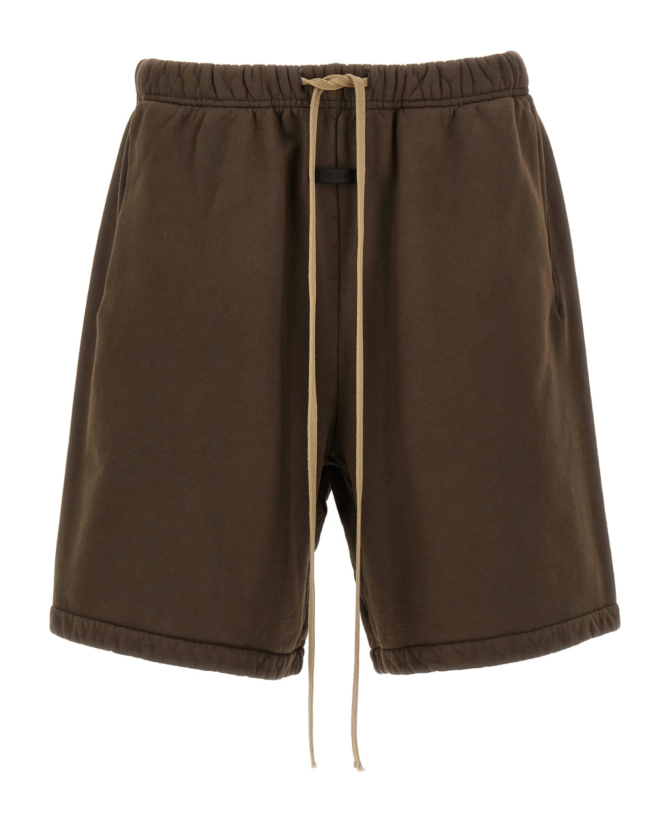 'Relaxed' cotton shorts with drawstring elastic waistband, side pockets, leather logo detail.