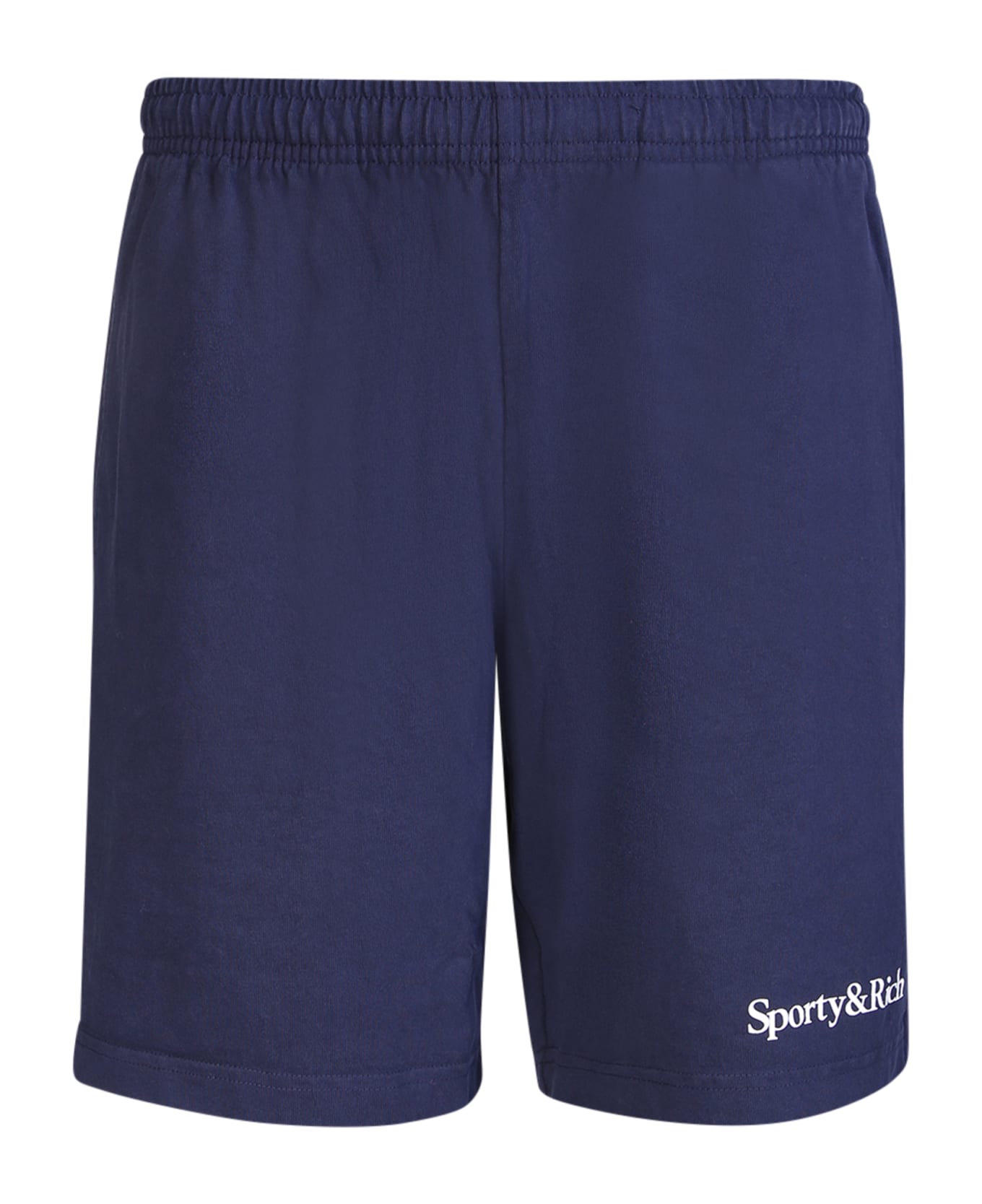 SPORTY & RICH Bermuda shorts feature a timeless navy blue finish, tailored with an elastic waistband for ultimate comfort and a signature logo for iconic style.