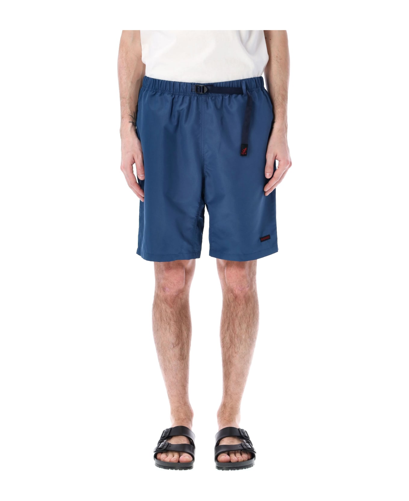 Shell Packable Short By Gramicci. Featuring: Elastic Waistband With Iconic Integrated Belt Side Slit Pockets Logo Patch At Front Back Zip Pocket The Model Is 1,90 M Tall And He's Wearing Size L