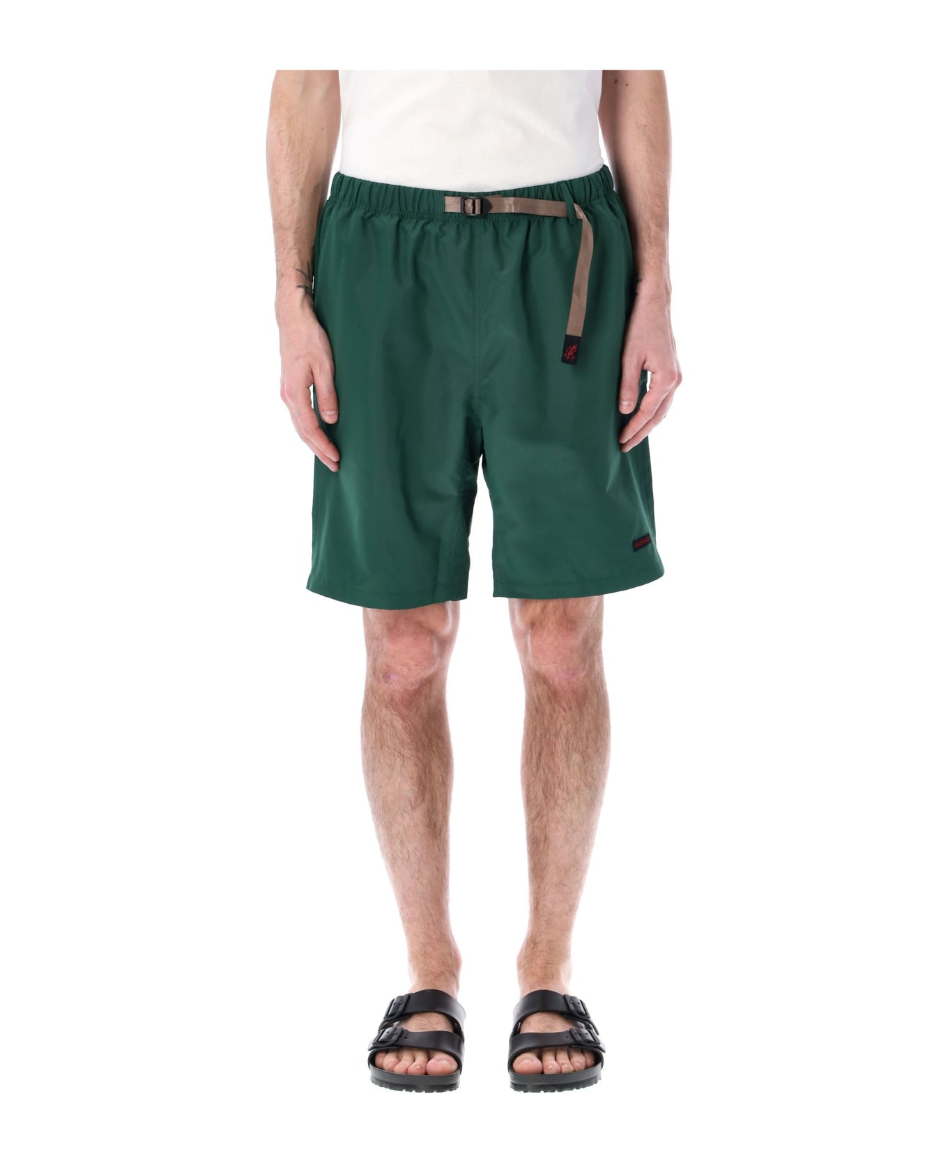 Shell Packable Short By Gramicci. Featuring: Elastic Waistband With Iconic Integrated Belt Side Slit Pockets Logo Patch At Front Back Zip Pocket The Model Is 1,90 M Tall And He's Wearing Size L