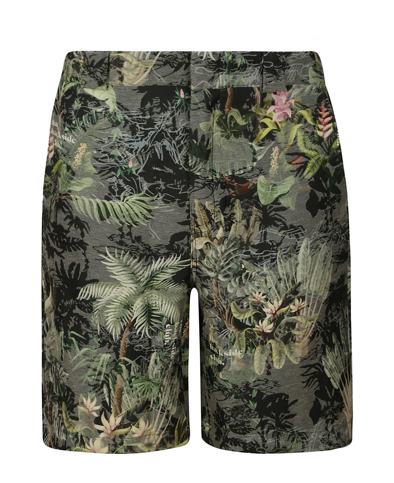 Blacksideclub Jungle patterned shorts, side pockets, zip and hook fastening, back pockets, logo patch. Composition: 70% Polyester, 30% Cotton