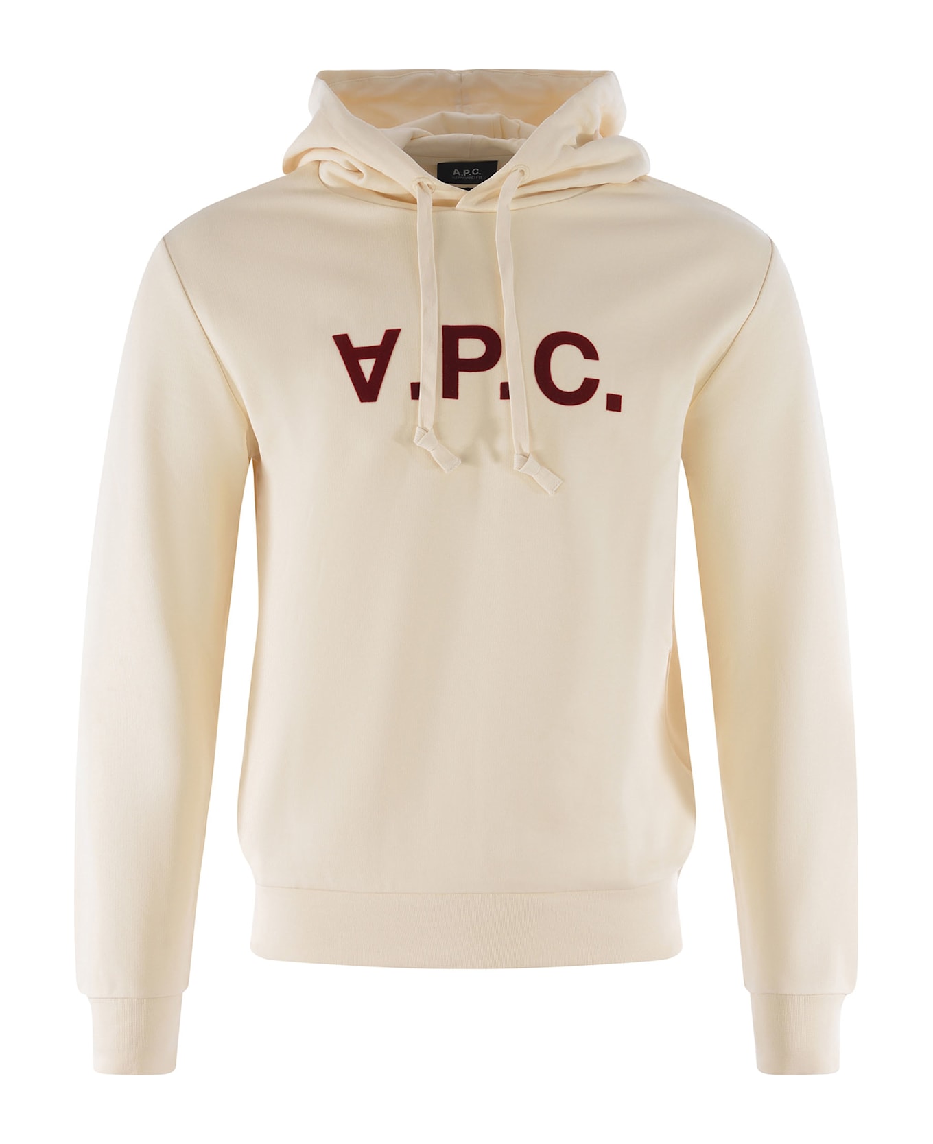 Sweatshirt hoodie A. P. C. made of cotton in Cream. Hood with drawstring. Long sleeves. Contrasting Bordeaux velvet effect "A. P. C. " logo. Ribbed cuffs and bottom. 100% Cotton