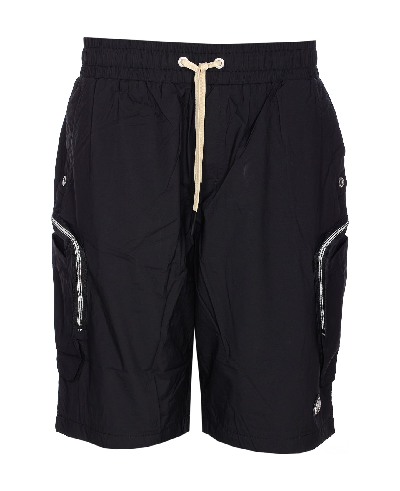 Moose Knucles black Tristan shorts, elastcized on waist, coulisse closure, lateral pockets, zip pokcets, patch logo on the front Composition: 57% Recycled Nylon, 40% Cotton, 3% Elastane, 100% Polyester