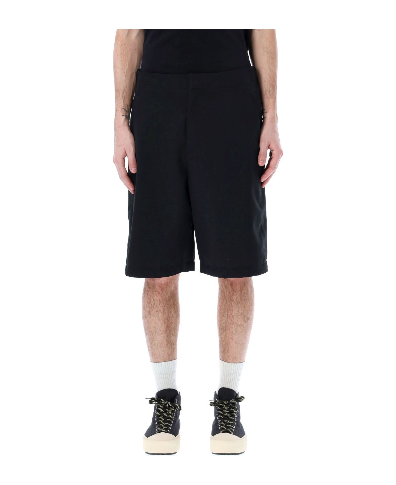Vapor Shorts Bermuda By Oamc. Featuring: Straight Fit Concealed Hook And Eye, Zip Fastening Elasticized Waistband At Back Slit Pockets Back Patch Pocket Model Is 1,90 M Tall And He Is Wearing Size M