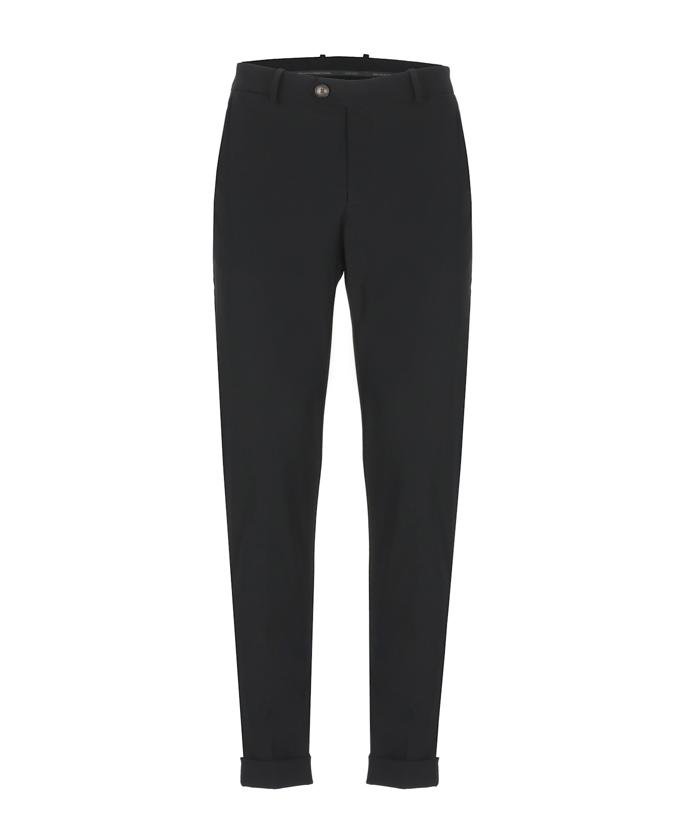 - Black RRD Roberto Ricci Design fabric pants for man - Belt loops - Two side slit pockets - Two rear welt pockets - Rear logo - Front zip and button fastening