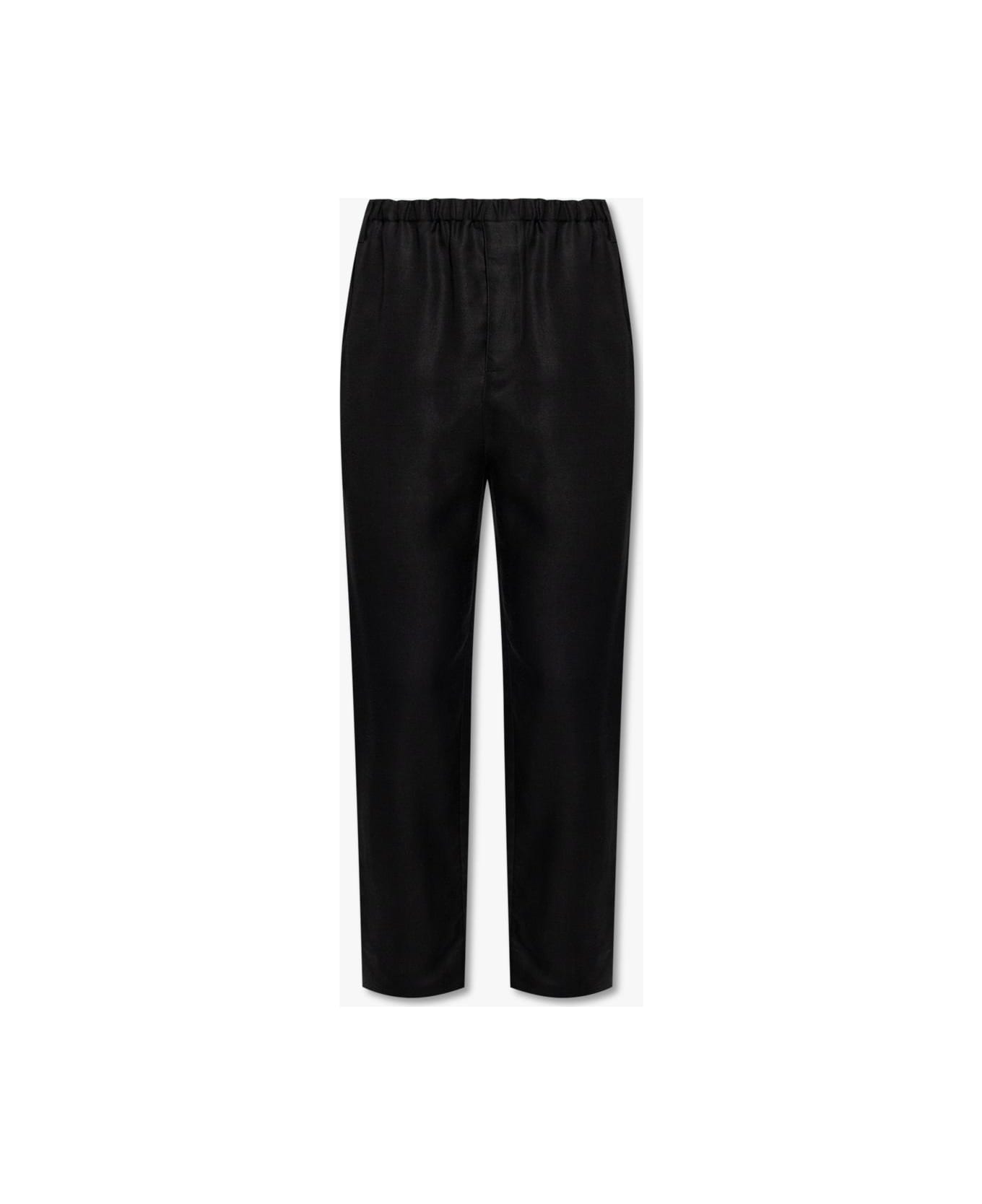Black trousers from Saint Laurent. Falling with tapered legs, this pair features an elasticated waistband, two slip pockets and front button closures. Composition: 81% Viscose 19% Ramie