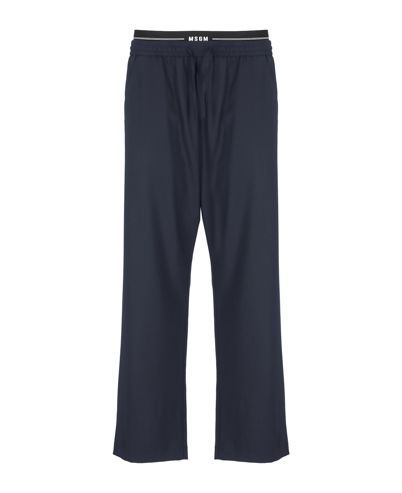 - Blue MSGM wool pants for man - Logoed elastic waist - Two side slit pockets - Two rear welt pockets