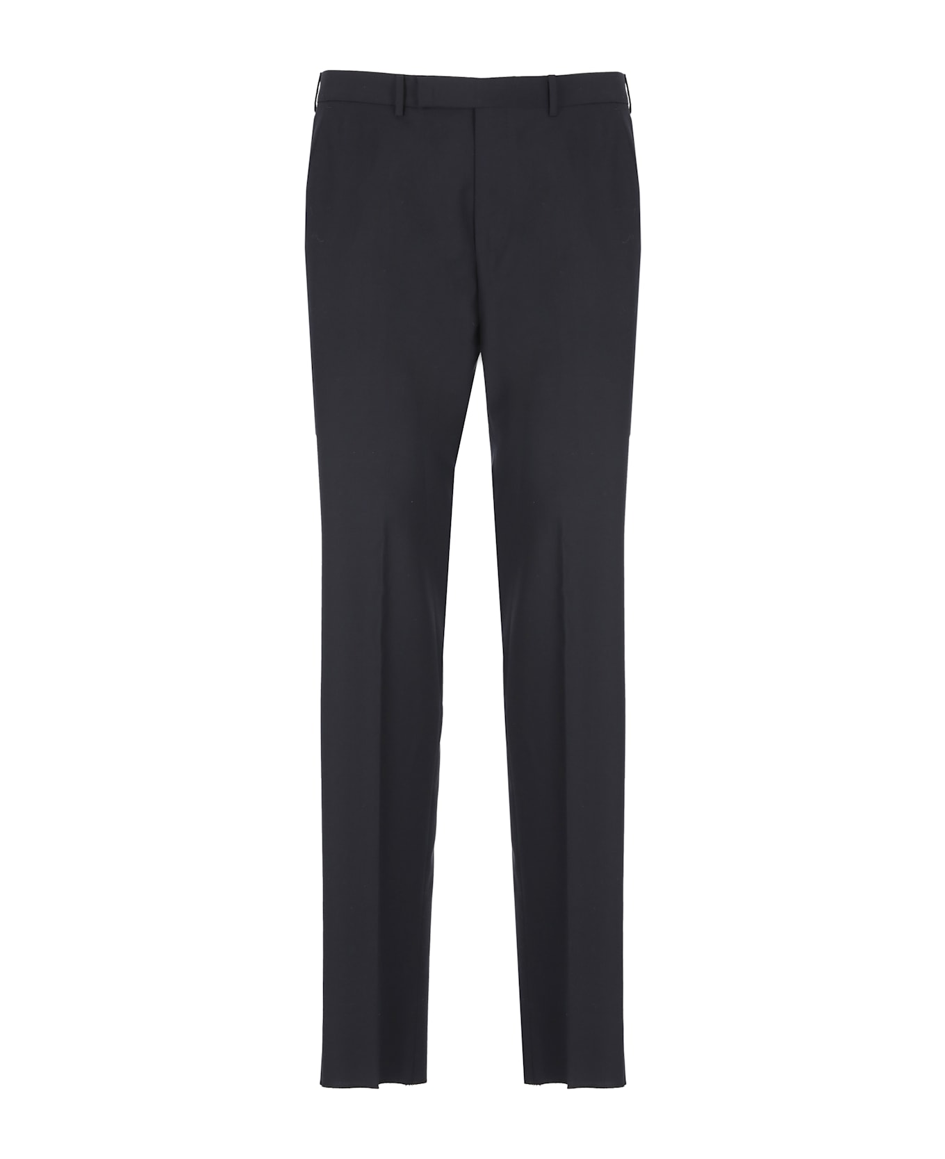 - Dark blue Zegna wool pants for man - Belt loops - Two side slit pockets - Two rear welt pockets with button - Front zip and hooks fastening Composition: 100% Wool