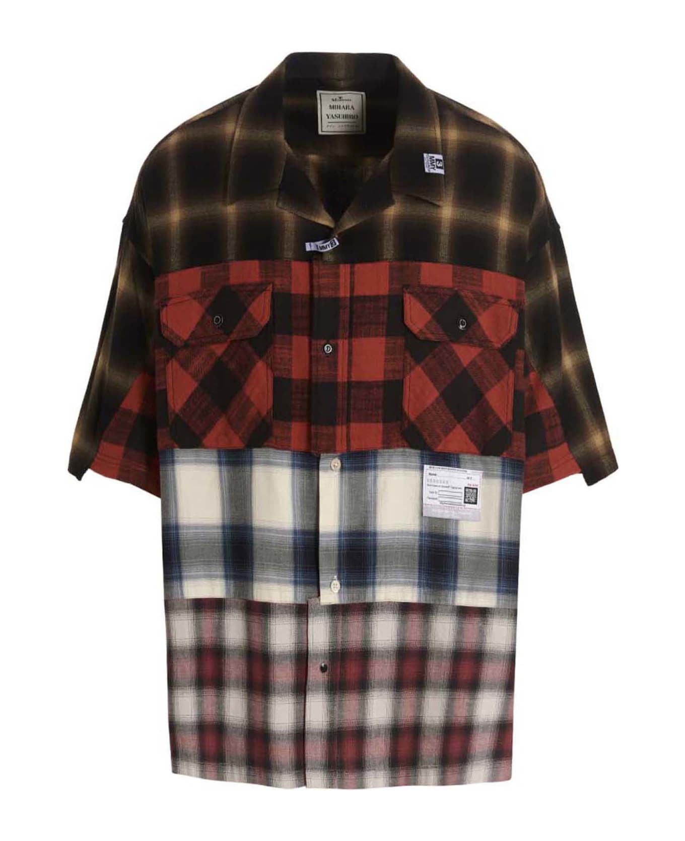 Camicia '4-cuts' in cotone stampa check patchwork con chiusura bottoni, modello a mezza manica con tasche sul petto.