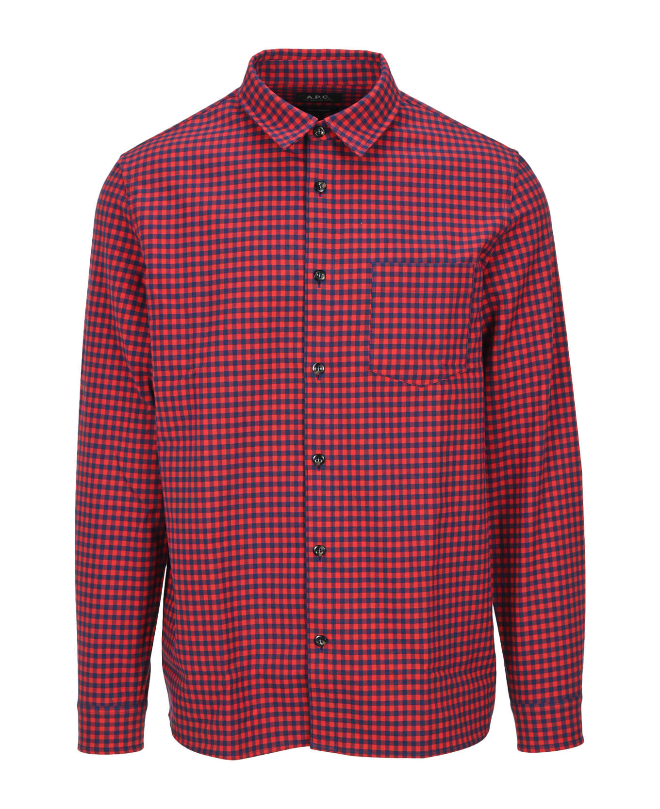 Cotton Jules Overshirt By A. p. c.. Featuring: - Classic Collar; - Front Buttons Fastening; - Chest Patch Pocket; - Long Sleeves; - Button Cuffs; - Mini Plaid Pattern; - Curved Hem.