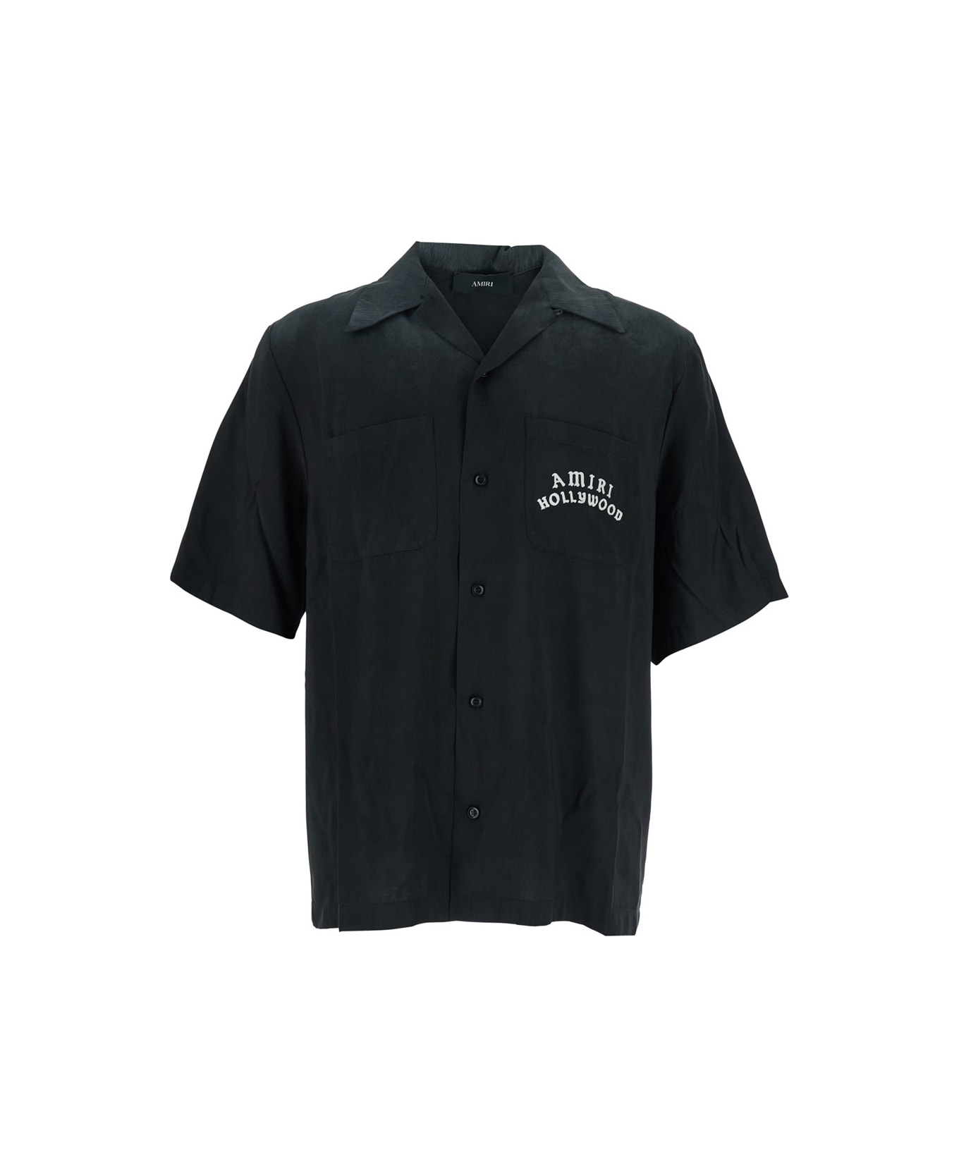 Shirt Black Cuban collar Short sleeves Button fastening Two front pockets Lettering logo on front Maxi lettering logo on the back Straight hem Cotton Wide fit