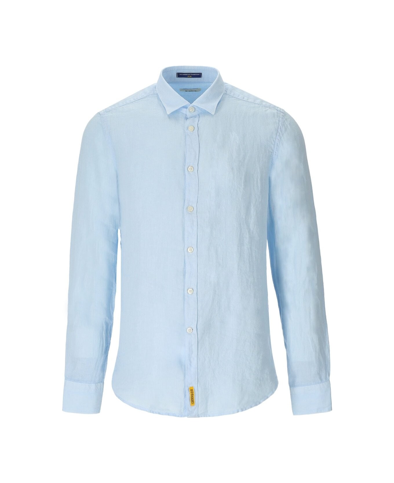 B-D Baggies shirt made of light blue linen. Adjustable cuffs and logo insert on the fastening. Comfort fit. Composition: 100% linen.