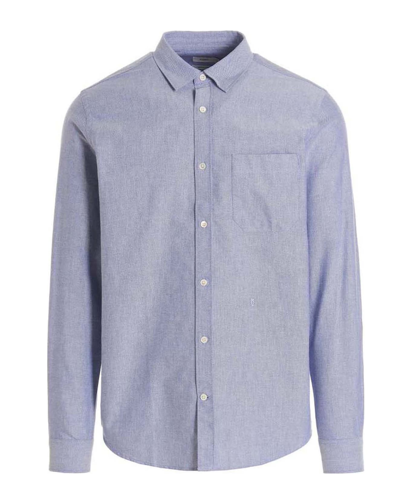 Basic cotton shirt with button closure, long cuffed sleeves and a pocket. : This product is made in organic cotton.