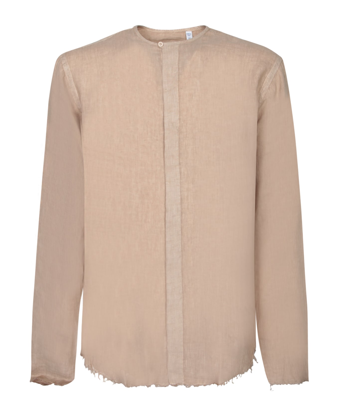 Elegant COSTUMEIN beige linen shirt, featuring a front button closure and a modern raw hem for a uniquely stylish touch.