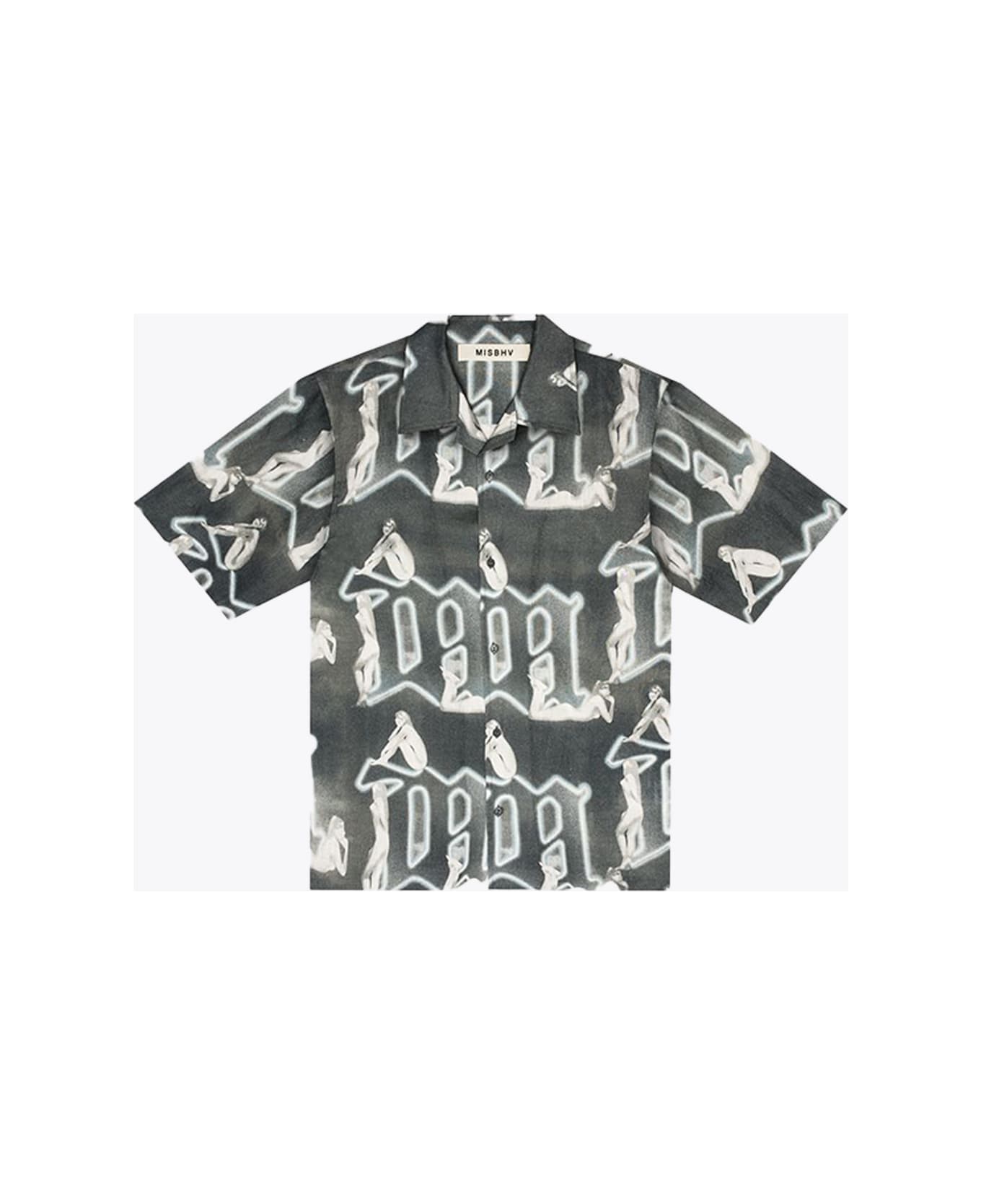 Big M Shirt Grey viscose shirt with monogram pattern print - Big M shirt