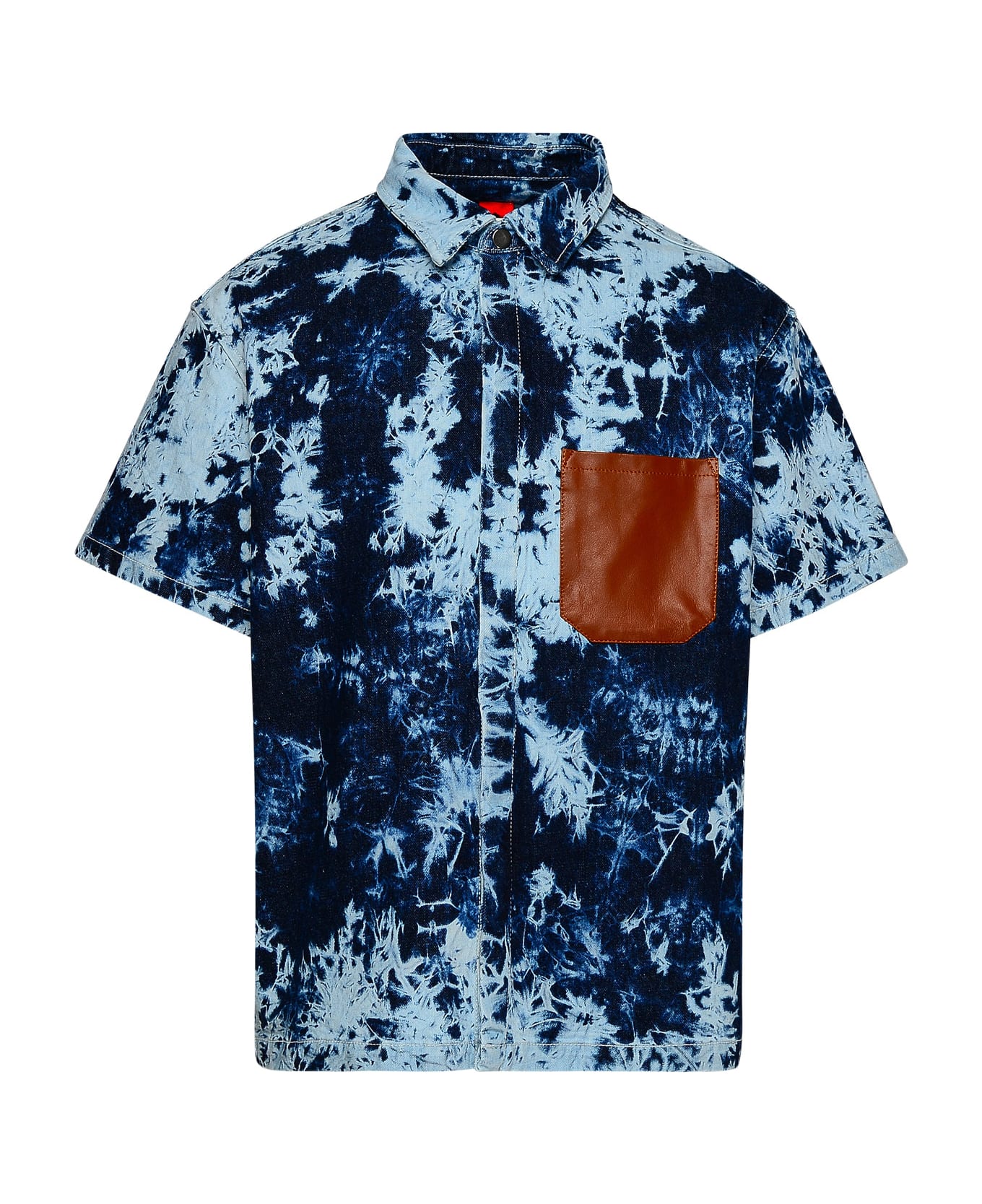 Over fit, pointed collar, button closure, leather chest pocket, nitrogen wash