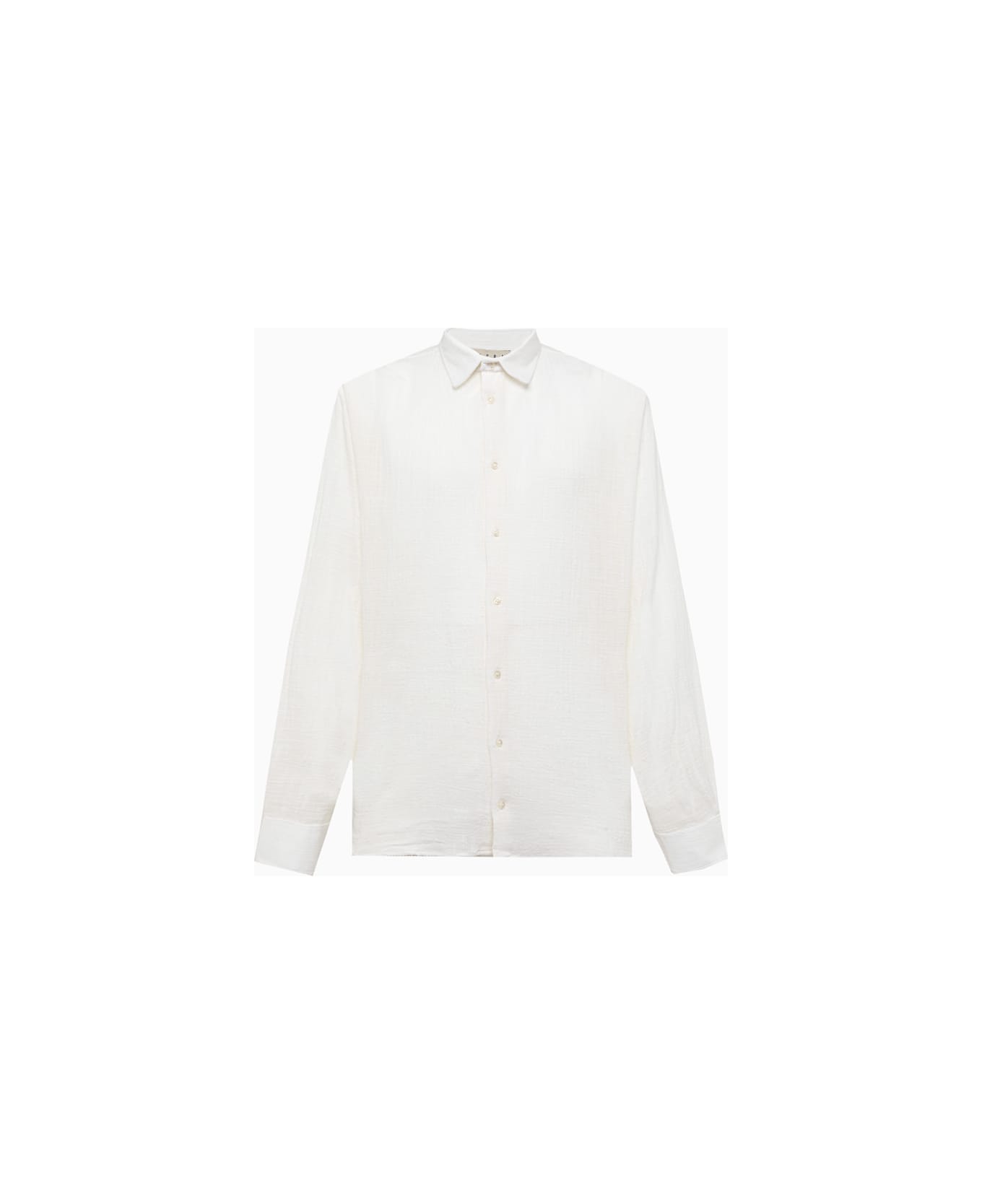 made in italy bruce shirt in solid color gauzed cotton. classic collar. button closure. long sleeves, buttoned cuffs. cannon detailing at back. rounded hem. oversized fit. composition: 100% cotton.