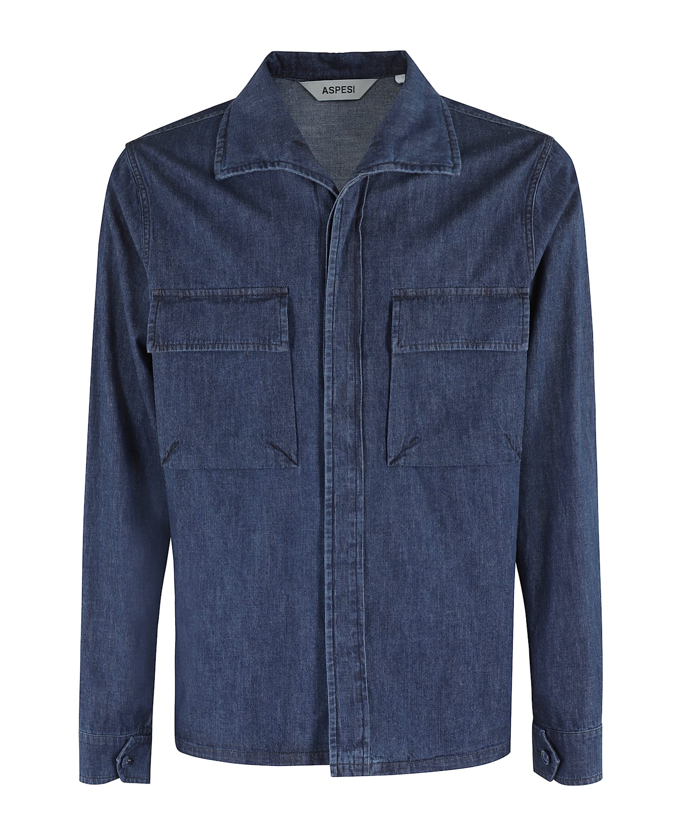 Capa shirt - Aspesi - Medium denim color - Cotton denim fabric - Collar - Long sleeve with cuff and button closure - Front flap pockets - Concealed front button closure - Regular fit