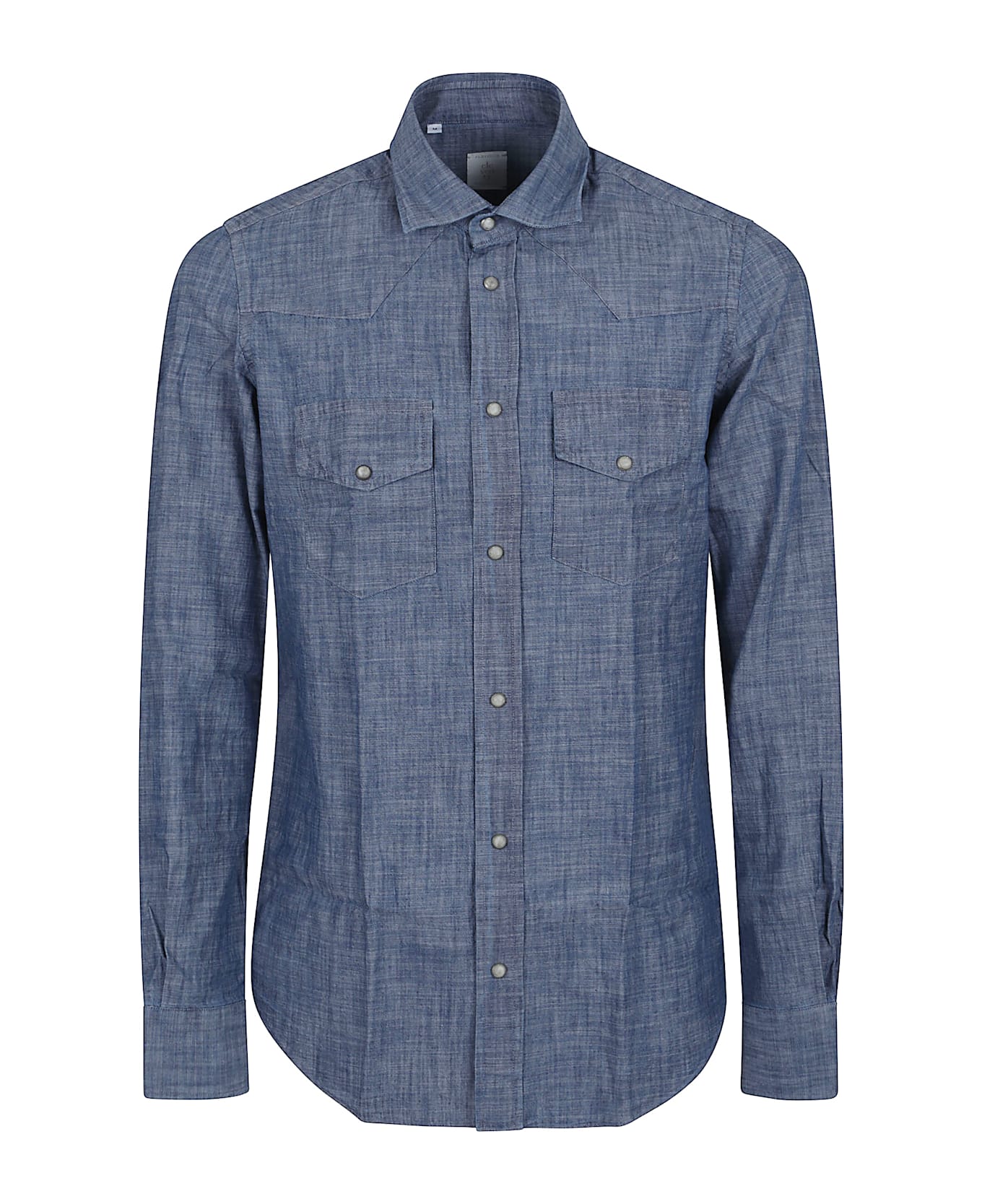 Cool cotton denim shirt by ELEVENTY. Front closure with mother-of-pearl buttons; two patch pockets with buttons; classic collar. Regular fit design, rounded hem.
