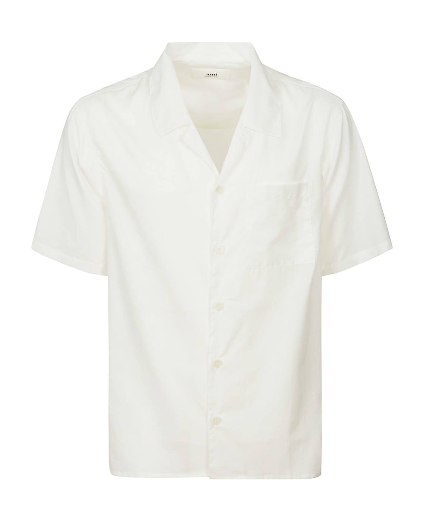 AMI White cotton shirt, button closure, short sleeves, chest pocket. Composition: 100% Cotton
