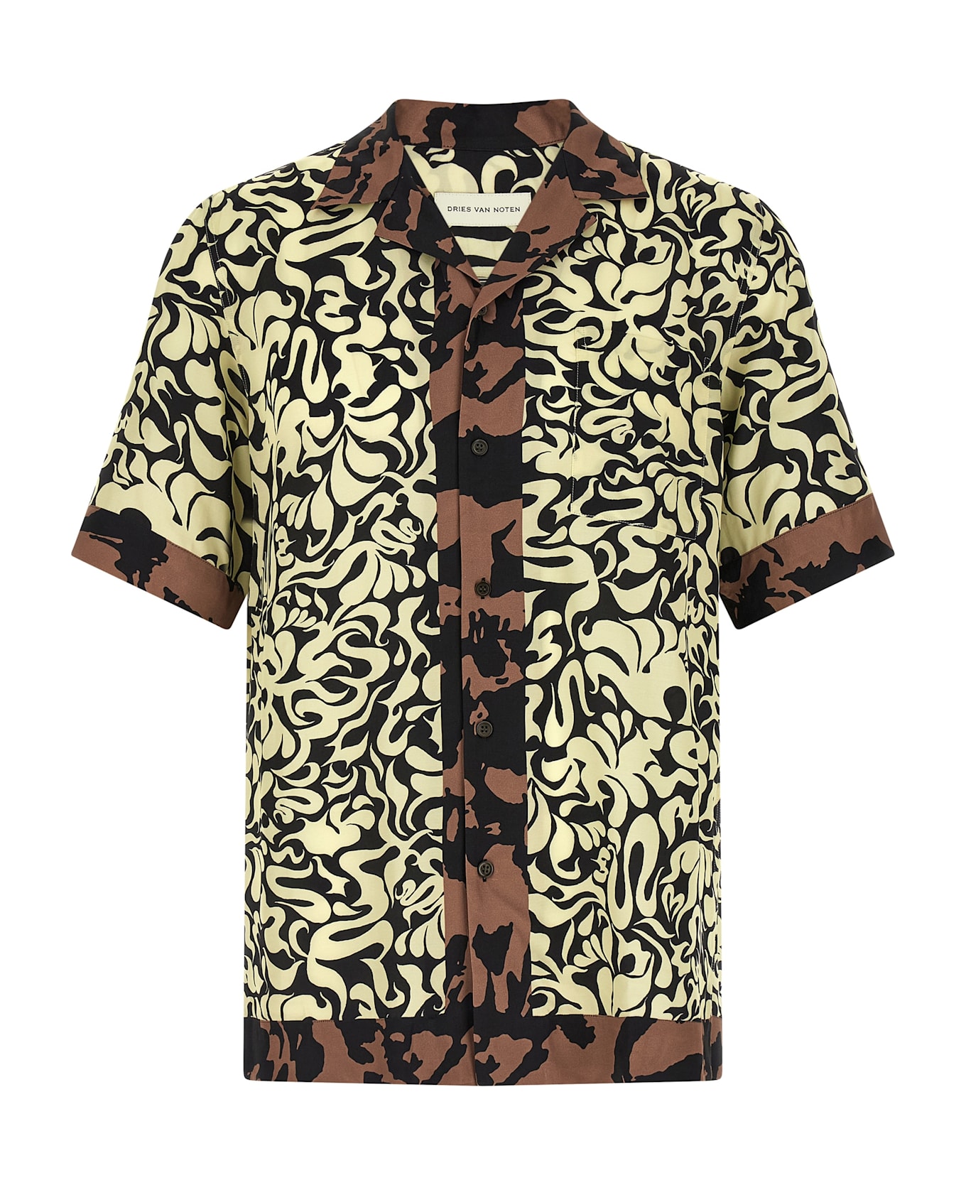 'Carltone' viscose shirt with all-over floral print, bowling model, breast pocket, front button closure, short sleeves, side split.