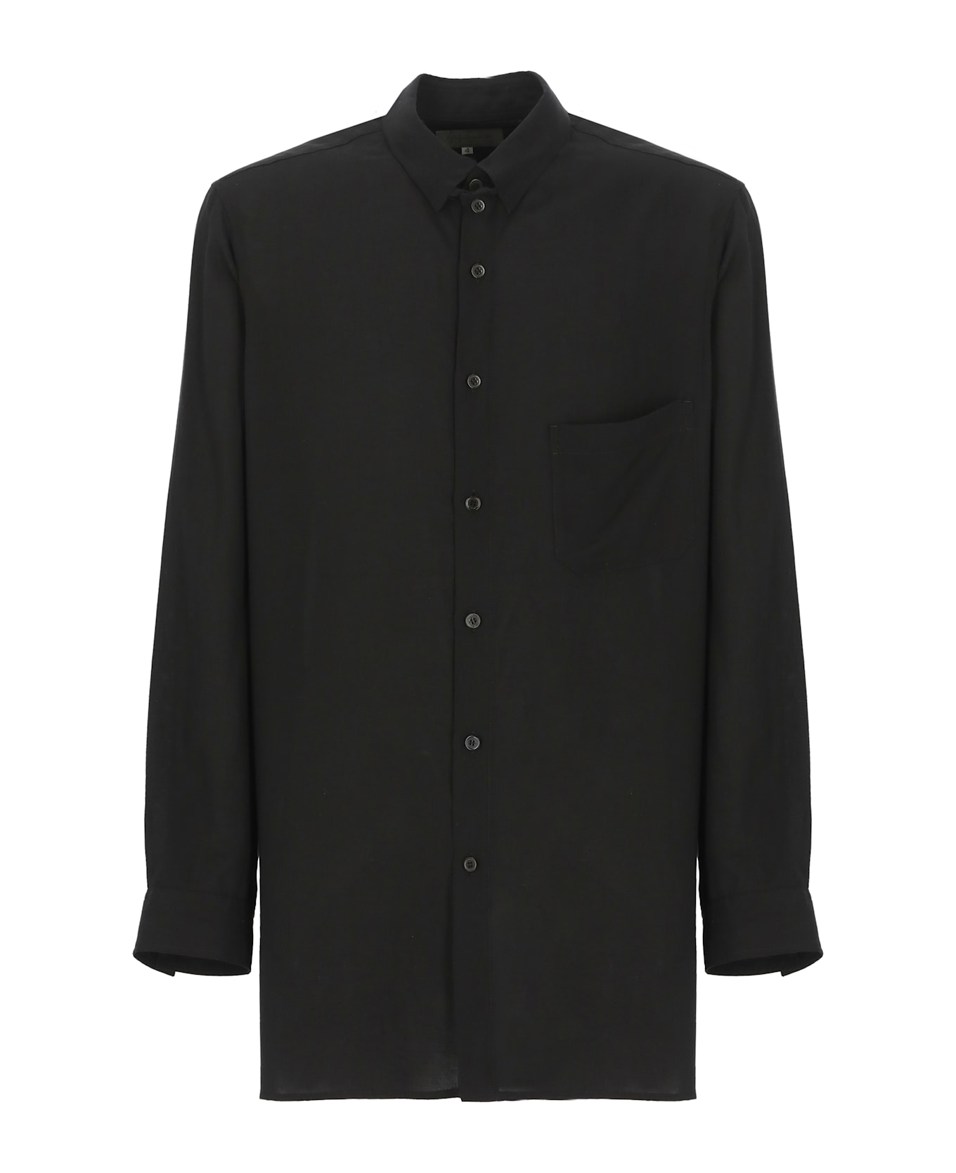 - Black Yohji Yamamoto Pour Homme cellulose shirt for man - Collar - Front welt pocket - Long sleeves - Front buttons fastening