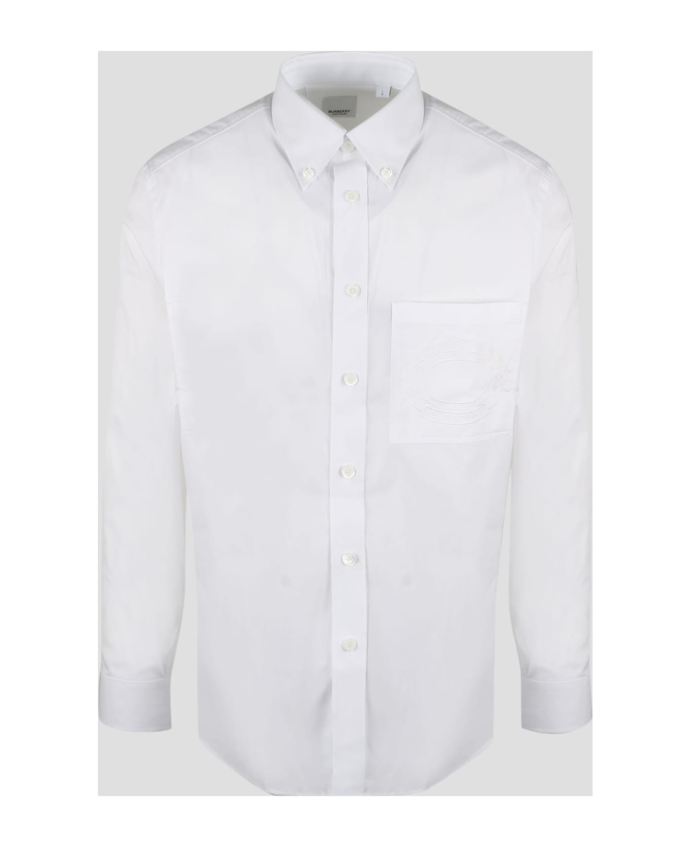 Burberry stretch popeline cotton shirt, with embroidered oak leaf crest and logo. - SS23