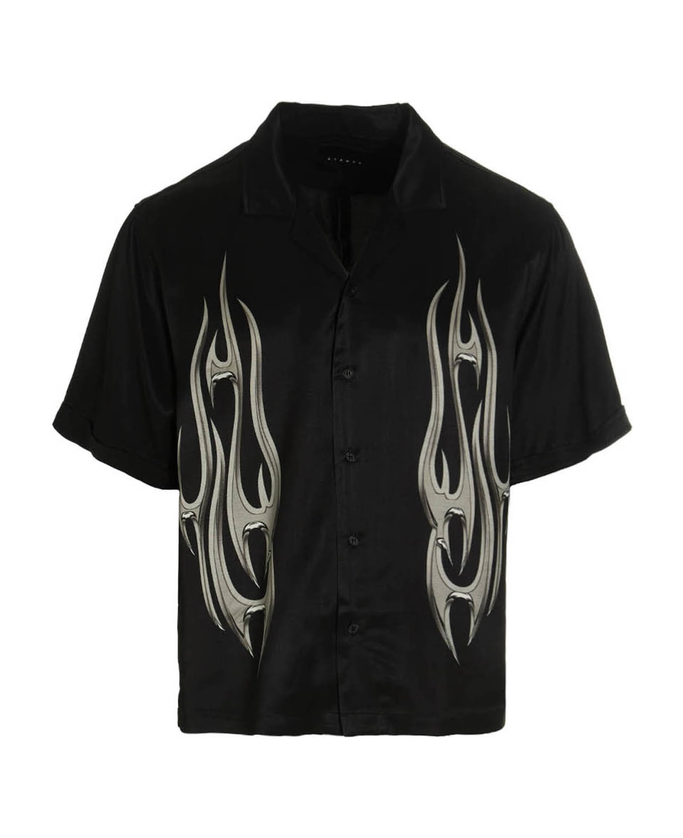 Chrome Flame' satin shirt with front print, a button closure and short sleeves.