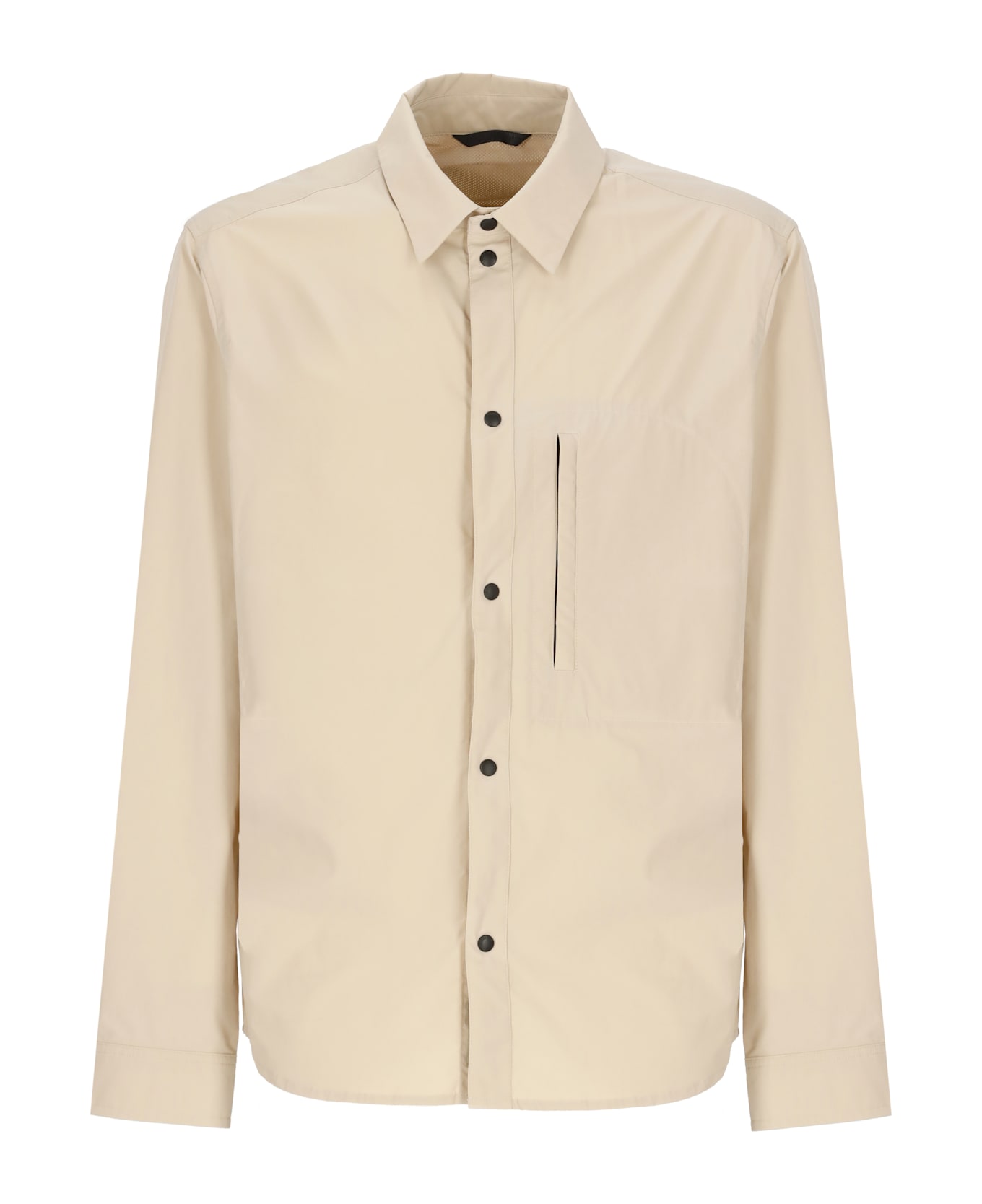 - Beige Woolrich overshirt for man - Collar - Long sleeves - Front zip pocket - Front buttons fastening